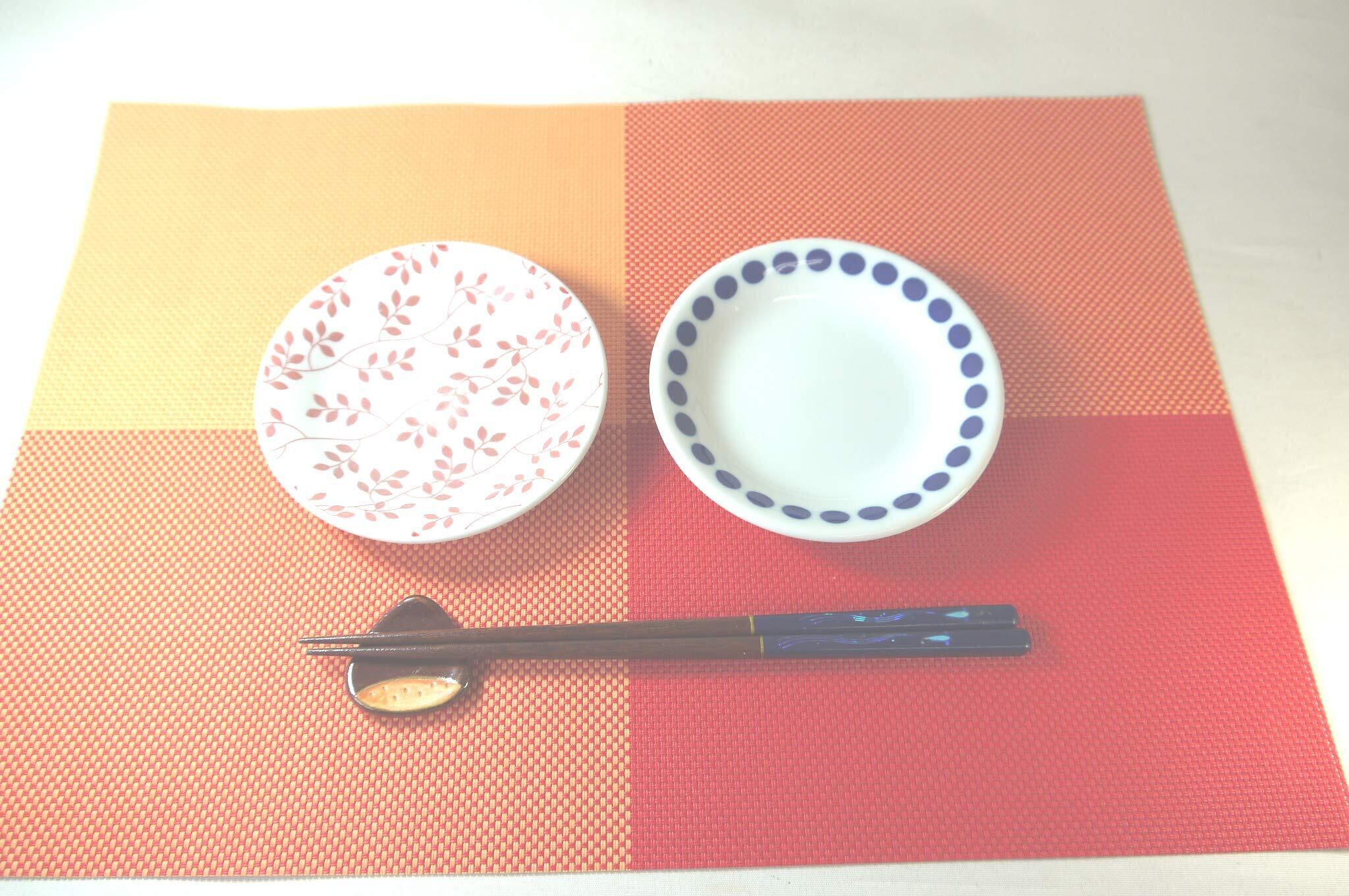 和と洋がマッチしたカラフルな取皿です。パーティーなど人が集う時に便利です。小皿以外は商品ではありません。