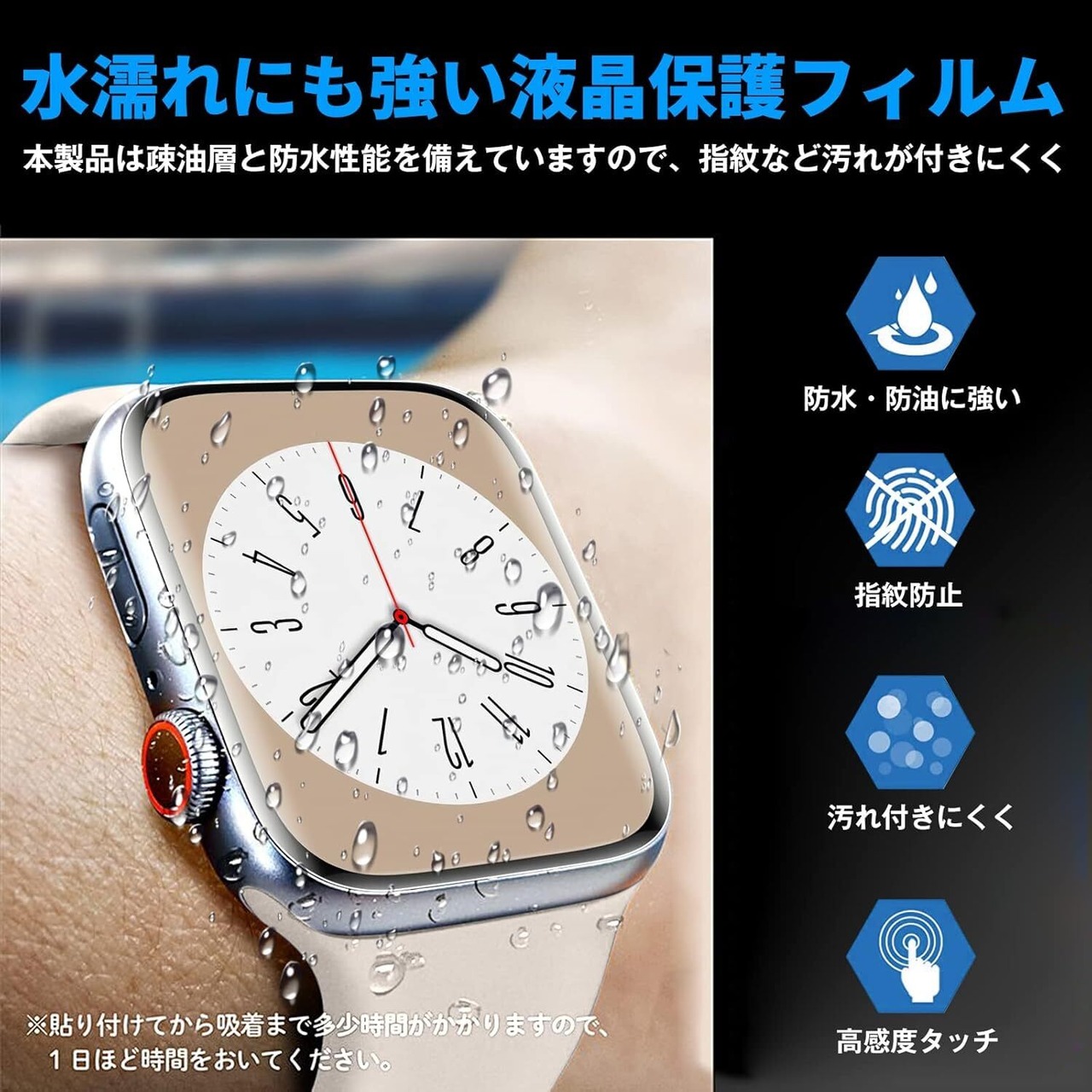 0.16mmの極薄設計・高感度タッチ:フィルム本体の薄さは0.16mmで、ケースに干渉しない、iWatchの画面の端までぴったりしたの3D設計!ブランドエッジ加工も施されて、アップルウォッチを全面保護し、角割れも防止します。高感度タッチも実現し、滑らかな手触り、快適に操作ができます。