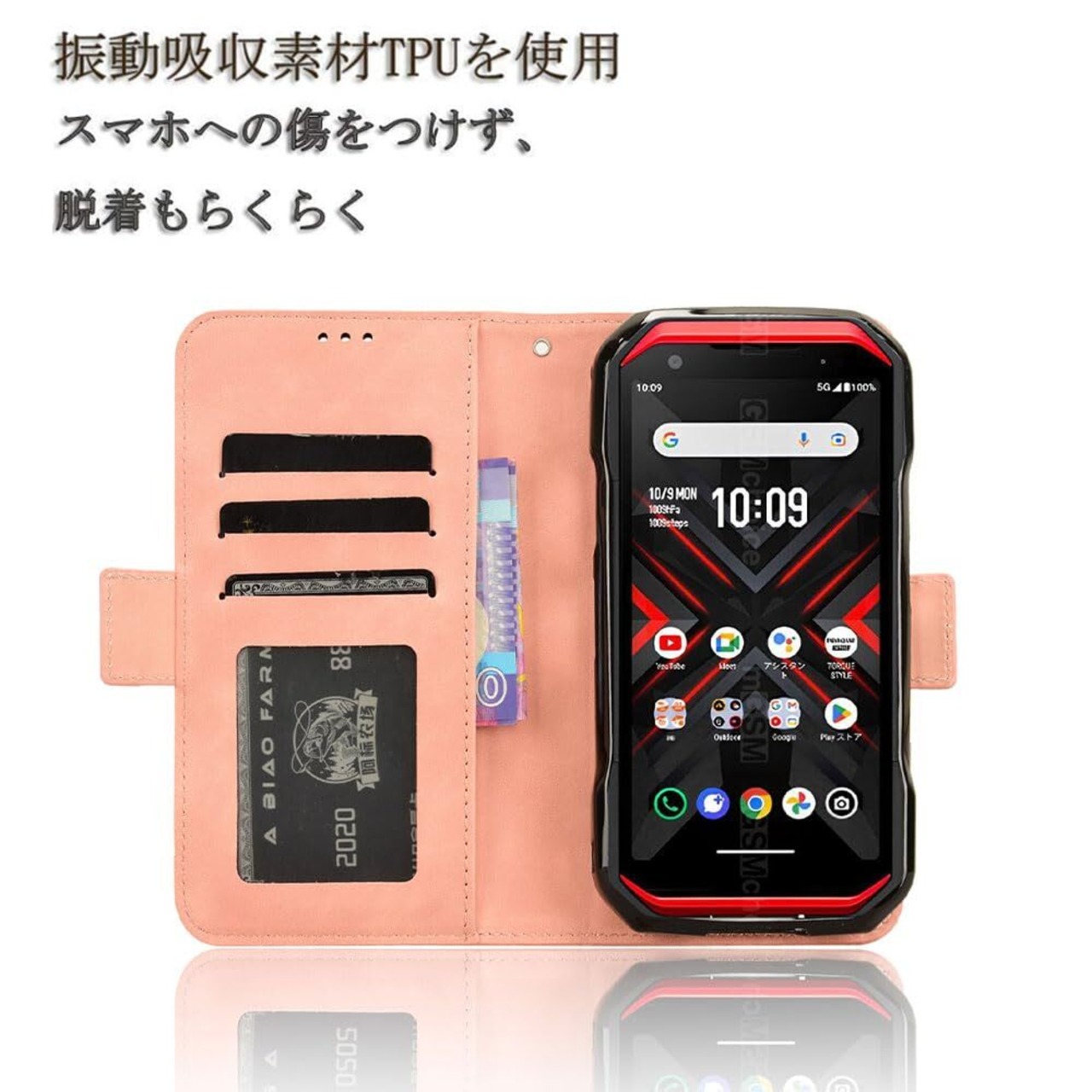 For TORQUE G06 KYG03 ケース手帳型 PUレザー素材【YEZHU】全面保護・カード収納・横置き機能対応 手触り良い 耐衝撃 滑り落ちにくい 指紋防止携帯 TORQUE G06 KYG03 カバー(ピンク)