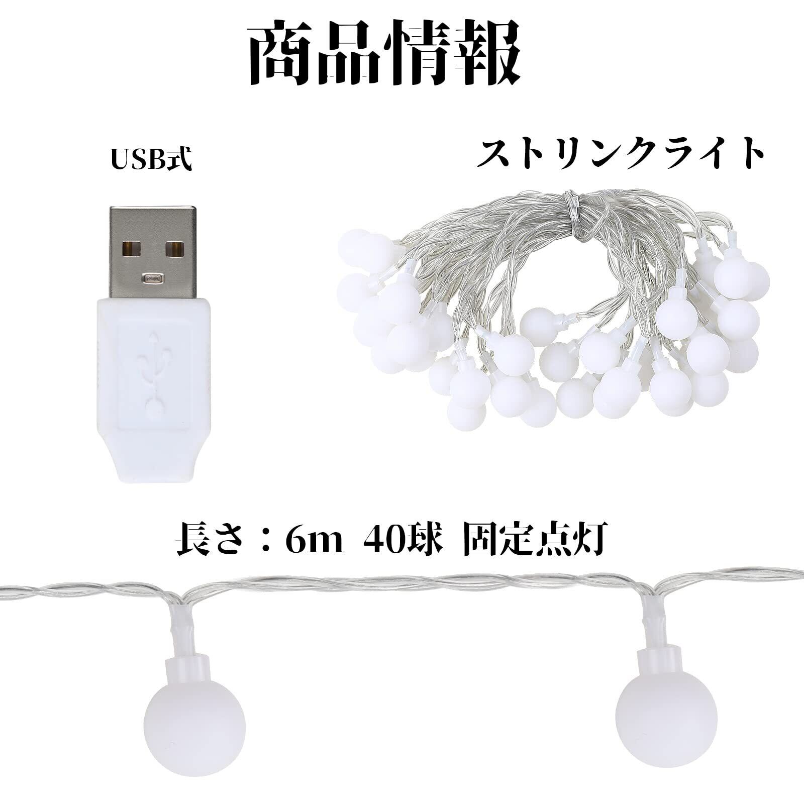LEDイルミネーションライト ジュエリーライト 40球 6m 防水 防塵仕様 屋外 室内 ガーデンライト 正月 クリスマス 結婚式 飾り ストリングライトー (ボール型電球 USB式電池なし)