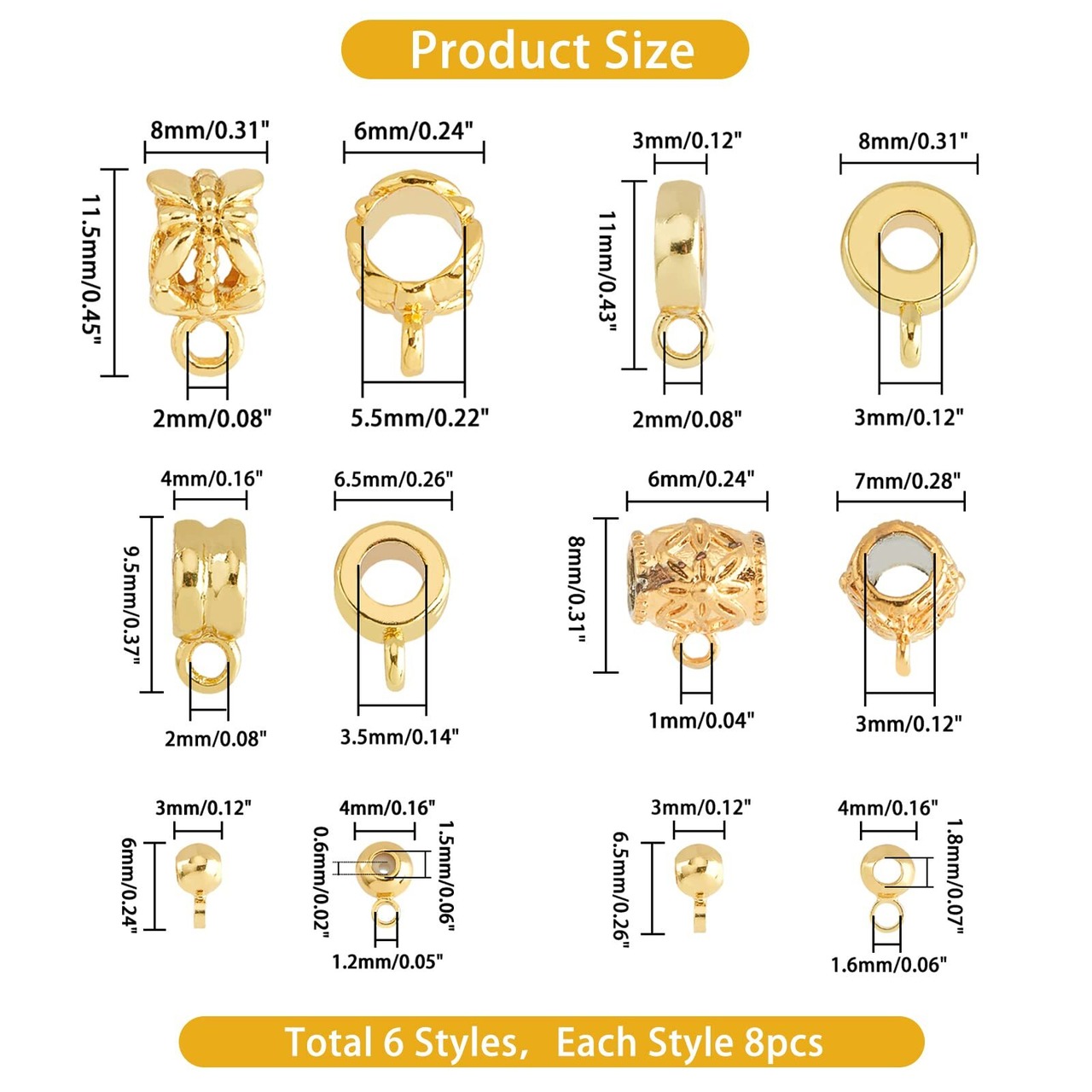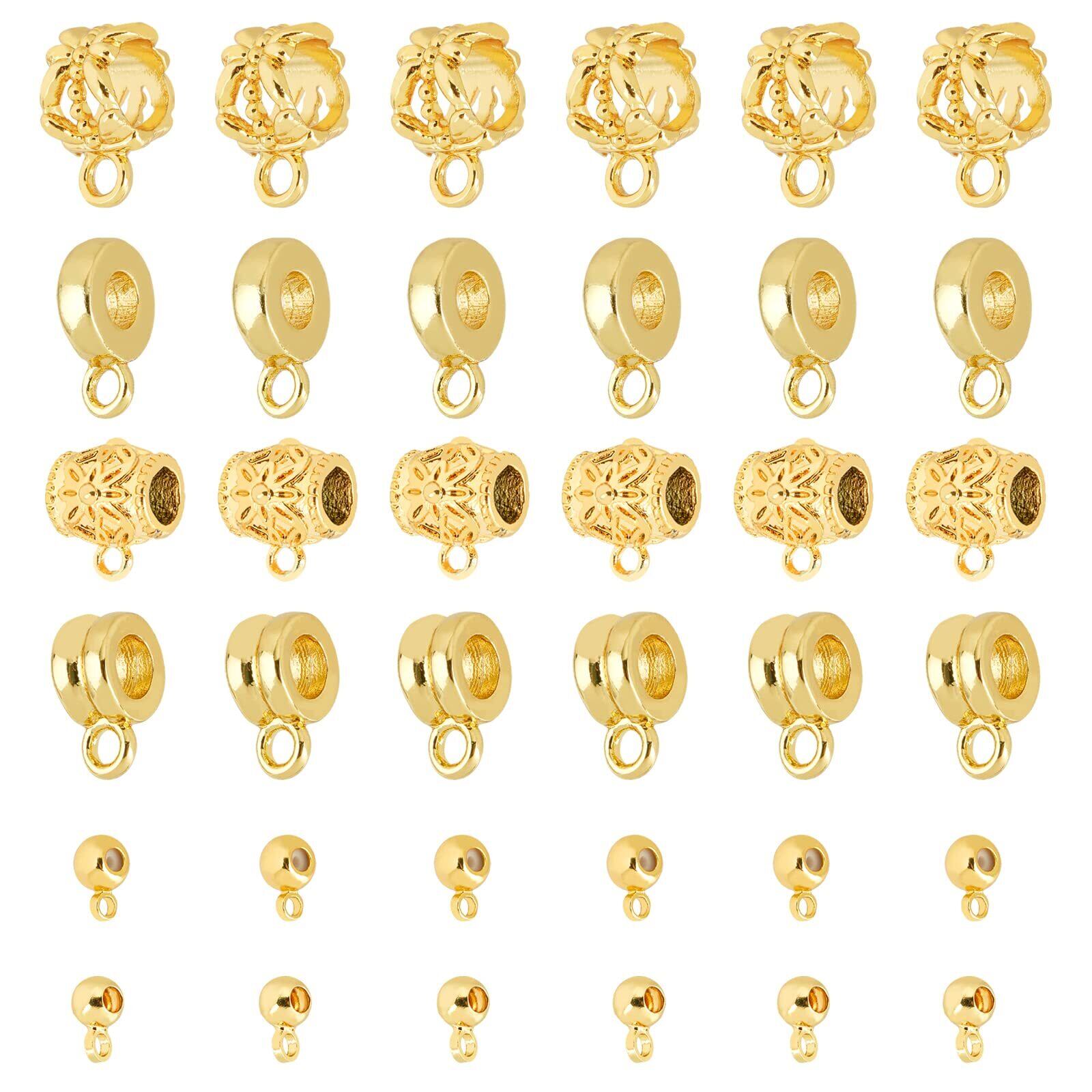 SUPERFINDINGS 48個入り ゴールド チベット風 ビーズ カン付き ハンガー メタルビーズ 6スタイル 合金スペーサービーズ チューブ 内径0.6/1.8/3/3.5/5.5mm 保釈ビーズ ヨーロッパビーズ ブレスレット作り 接続金具 アクセサリーパーツ ジュエリー作り クラフト用品 手作り素材 DIY材料 穴1/1.2/1.6/2mm