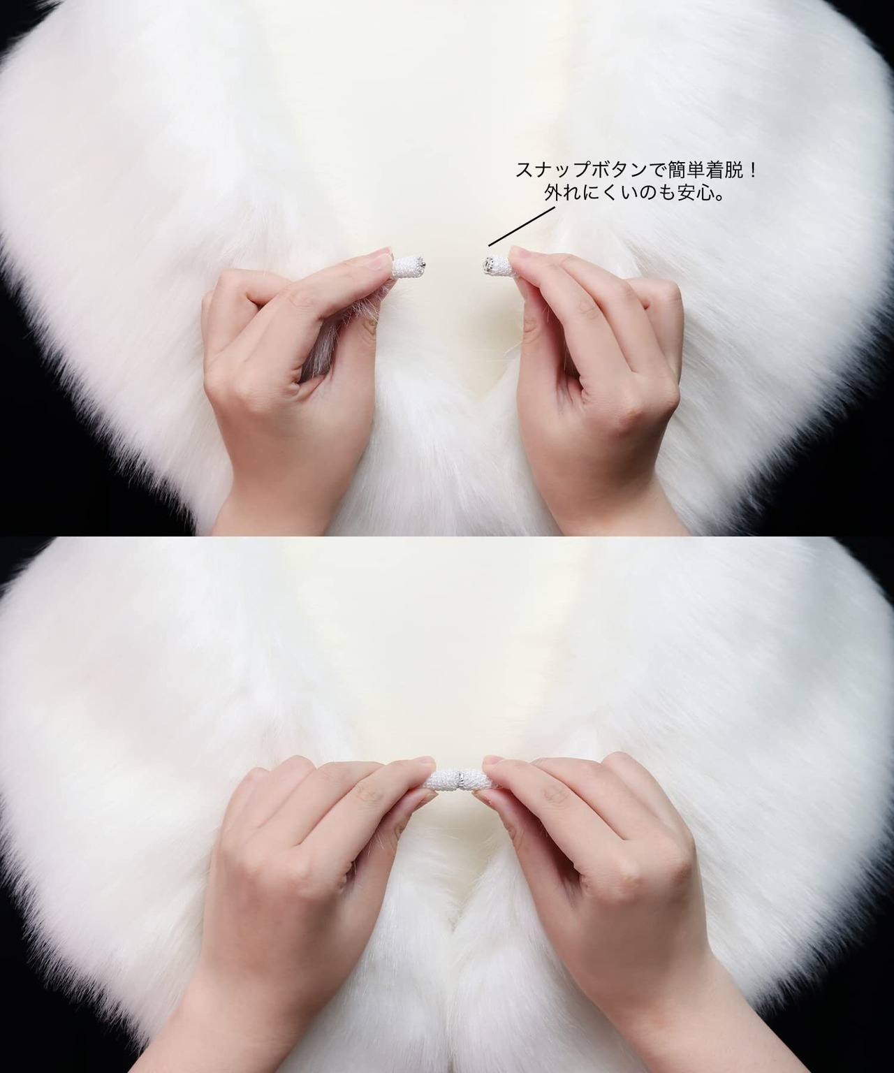 ボリュームたっぷりで手触りがよく高級感のある仕上がりに。スナップボタンで簡単に着脱ができます。