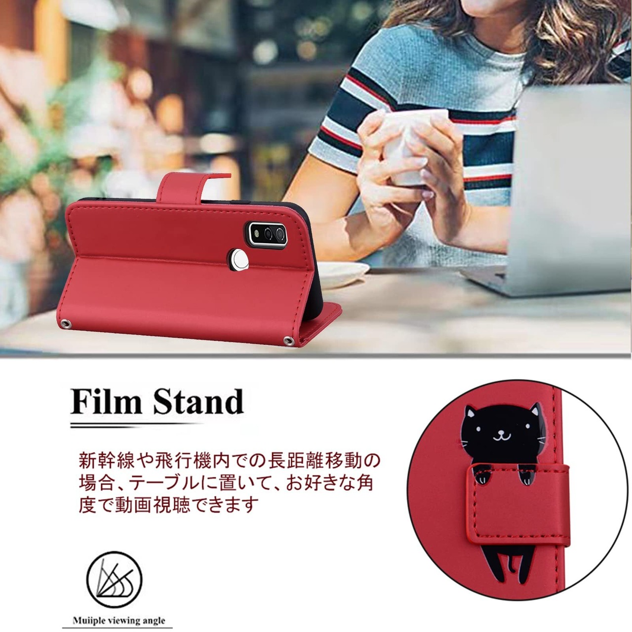 ❷【収納性・財布型】ケースの裏側にカードポケット2つ,クレジットカード、idカード、定期券を収納可能、透明ポケットに写真、名刺入れも可能です。❸【横置きスタンド機能付き】動画の視聴やテレビ電話などを長時間行っても疲れません、新幹線、飛行機の中で暇つぶしに最適。