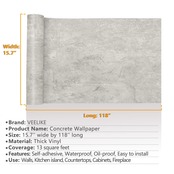 【サイズと素材】このライトグレーのコンクリート調壁紙シールは、サイズ:幅40cmx長さ300cm、面積は1ロールあたり1.2平方メートルです。他の壁紙シールより厚くて、高品質なポリ塩化ビニル製、耐久性あり、破れにくいです。
