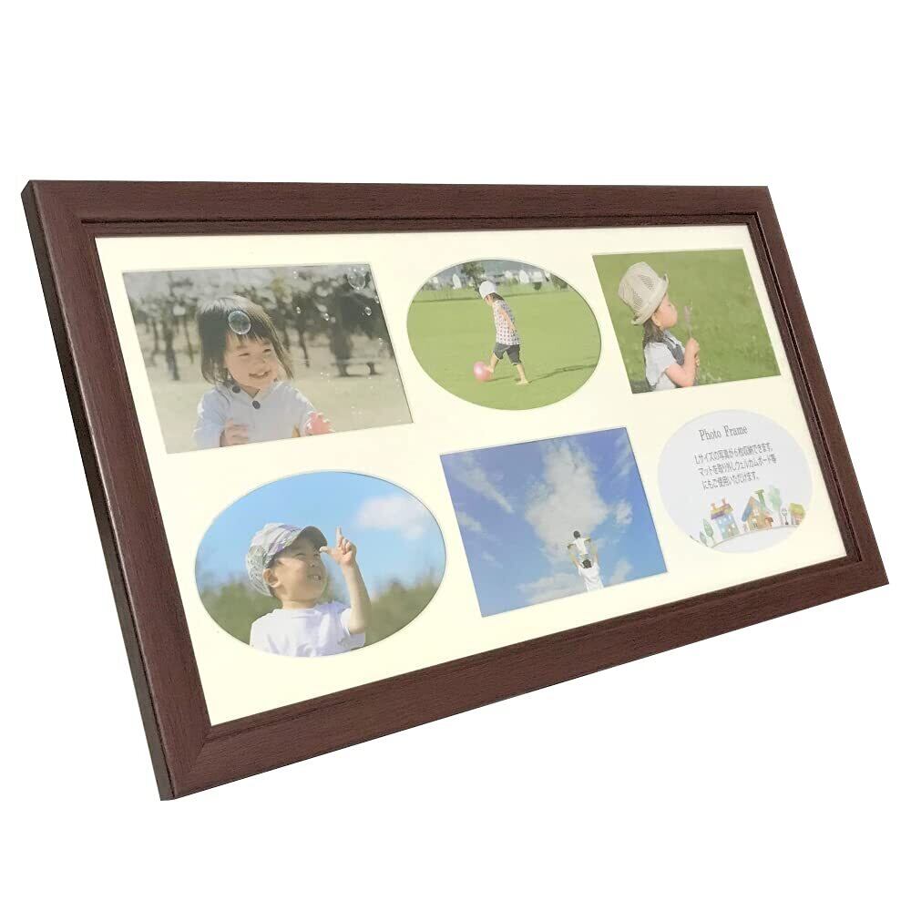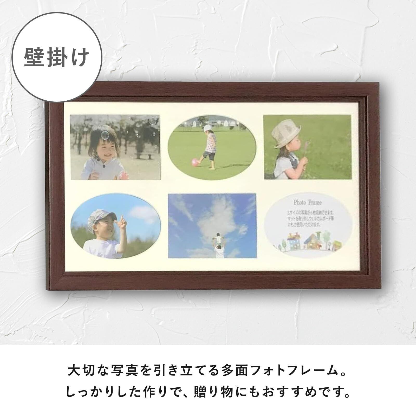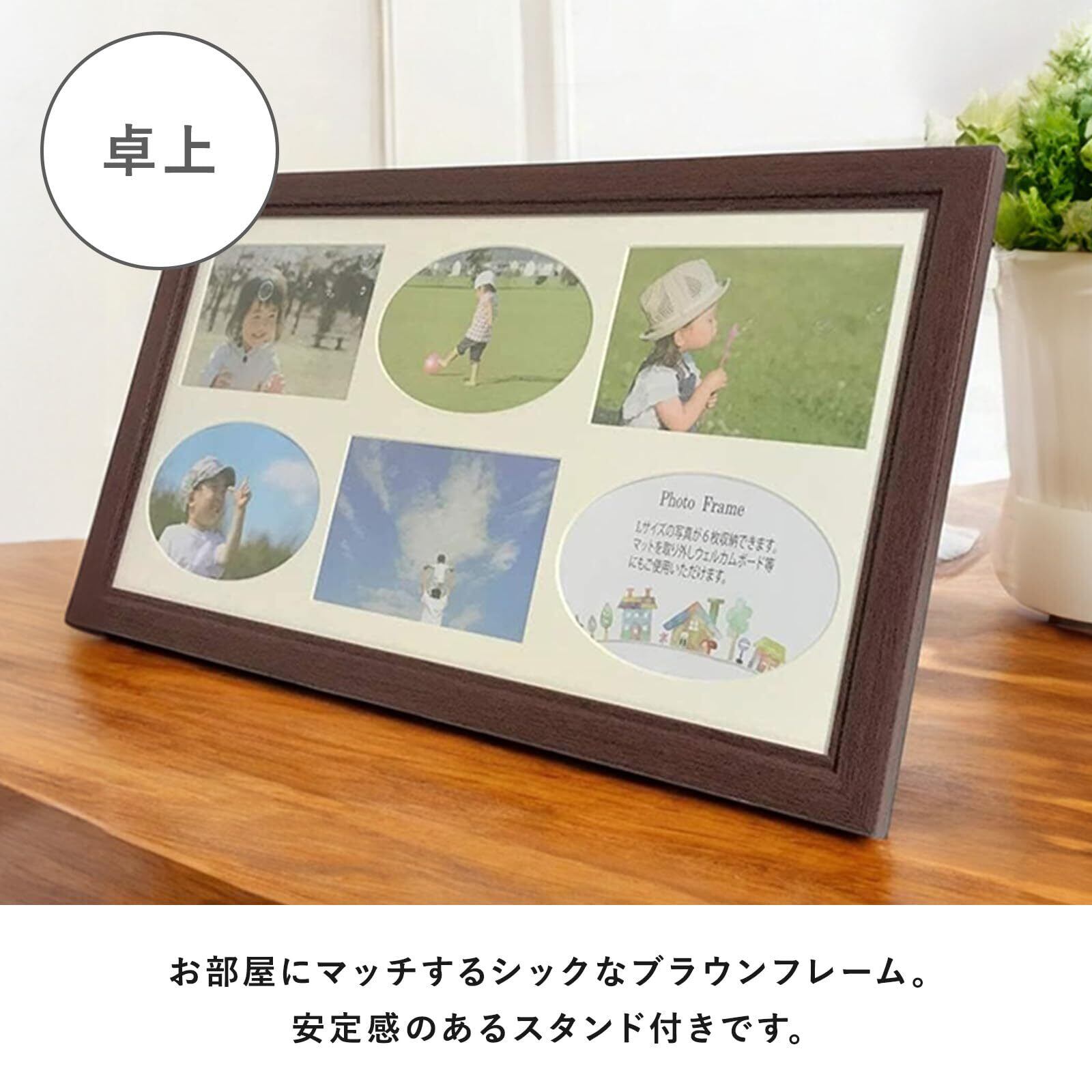 多面 フォトフレーム ファミリー ワイドタイプ 写真額 L判 6枚 卓上 壁掛け 写真立て 木製 フレーム ブラウン