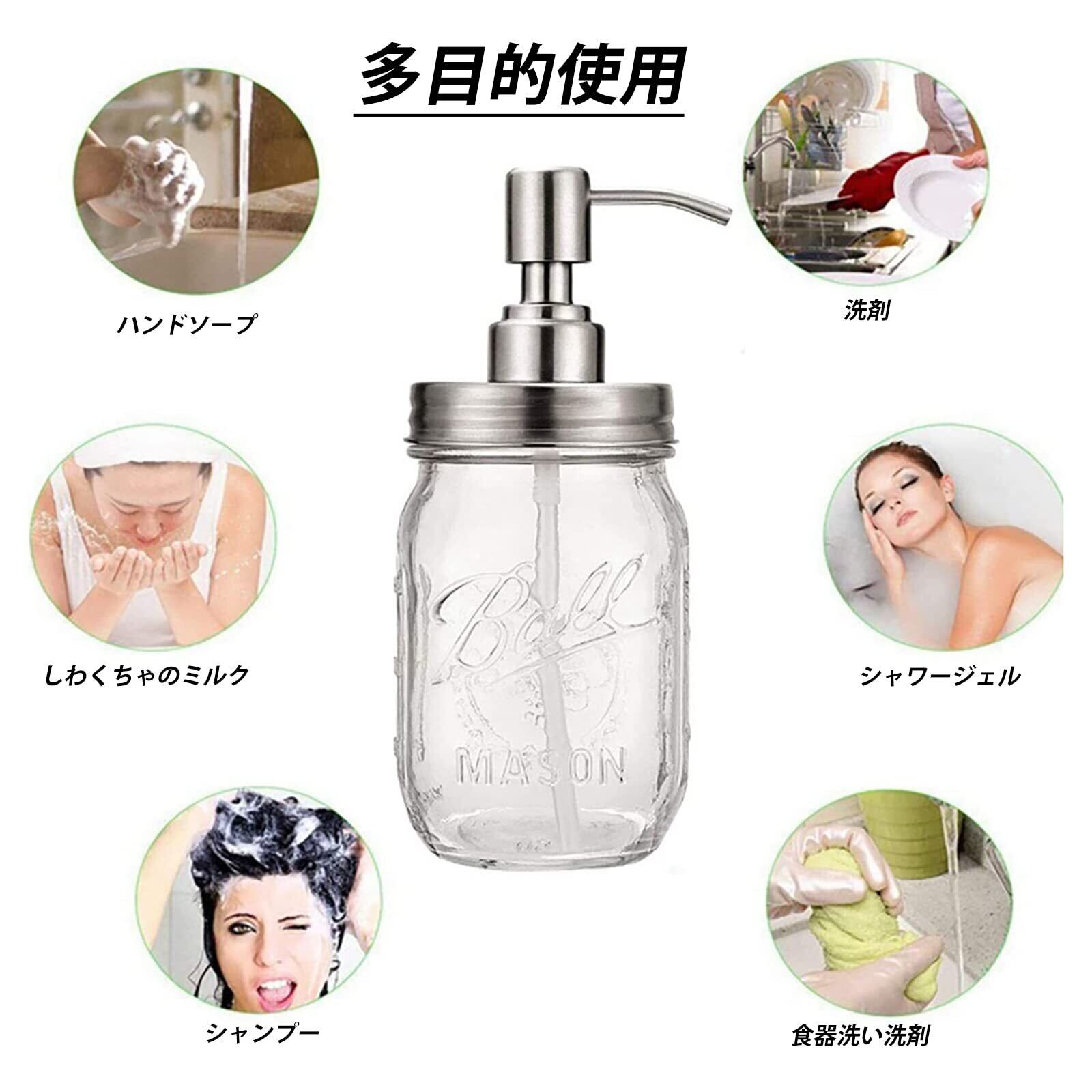 ソープディスペンサー 透明のガラス ポンプをスペア 液体 シャンプー 洗剤用容器 ボトル 詰替え容器 台所 バス室 洗面所に適用