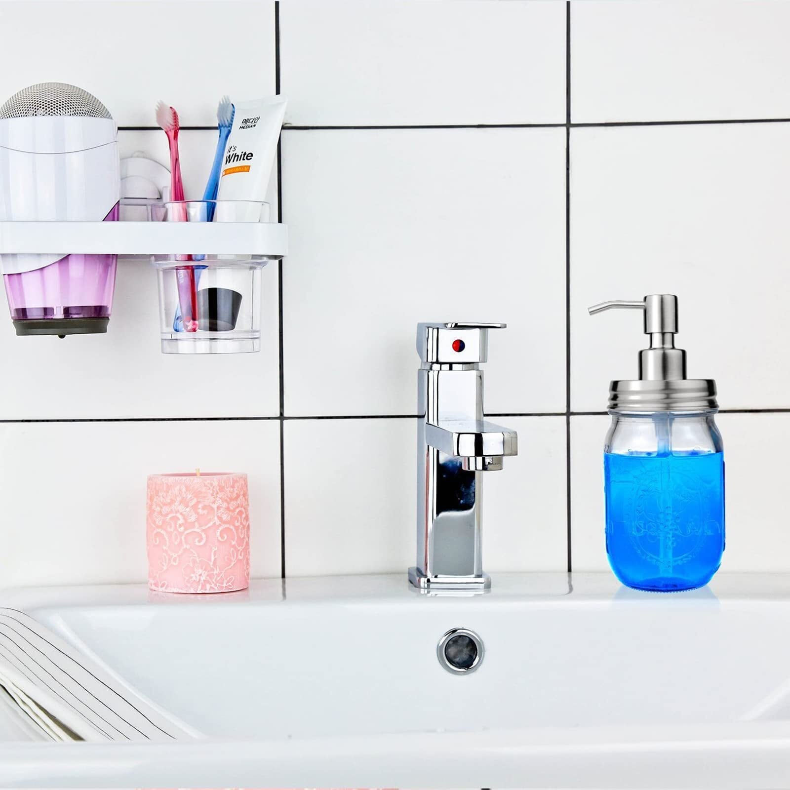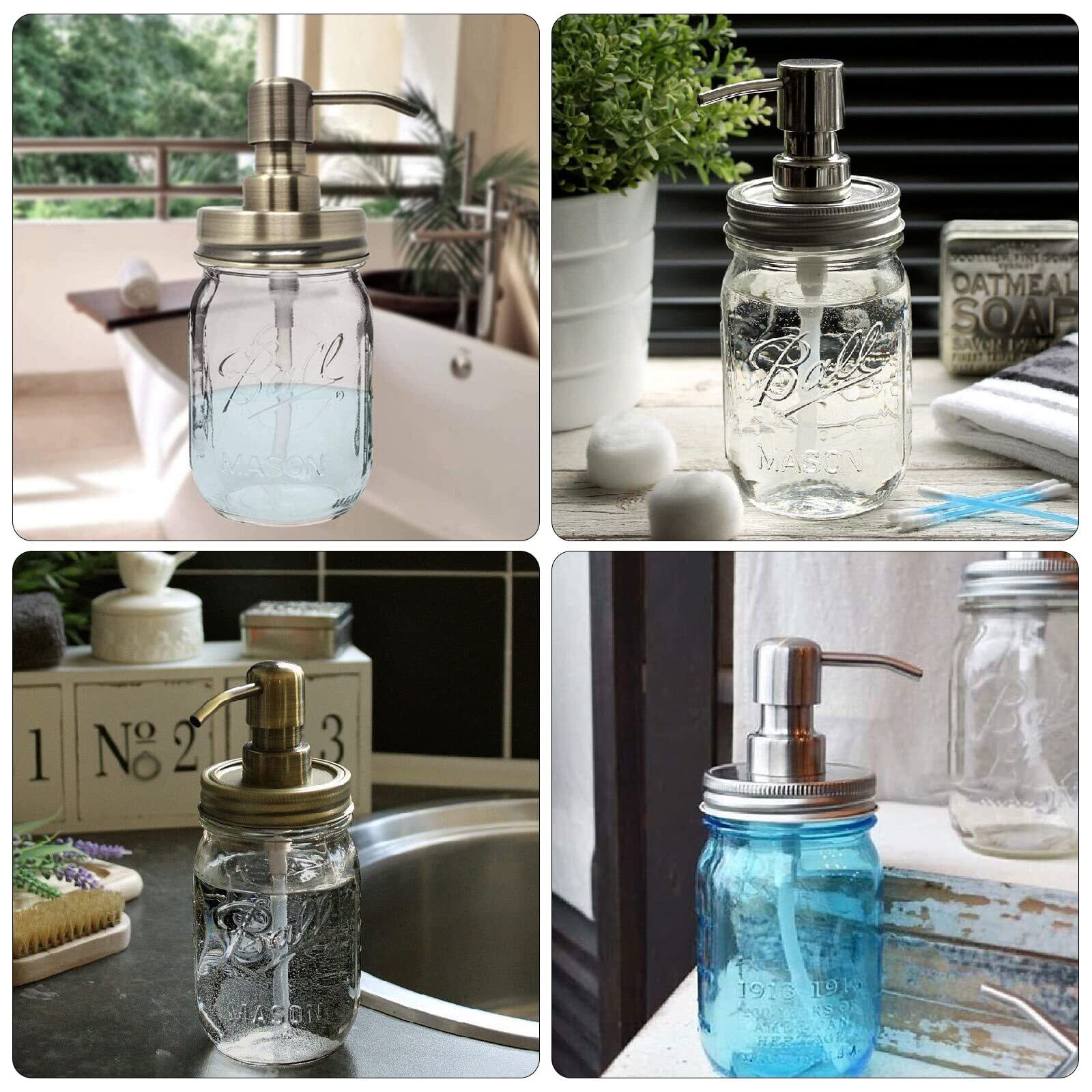 16オンス透明ガラスメイソンジャーソープディスペンサーステンレス鋼ポンプ19*8cm
