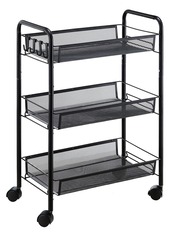 メタルラック キッチンワゴン メタル メッシュ キッチン カート 防錆 小物収納 サイドワゴン 3段 幅26.5×奥行45.5×高さ63.5cm ブラック