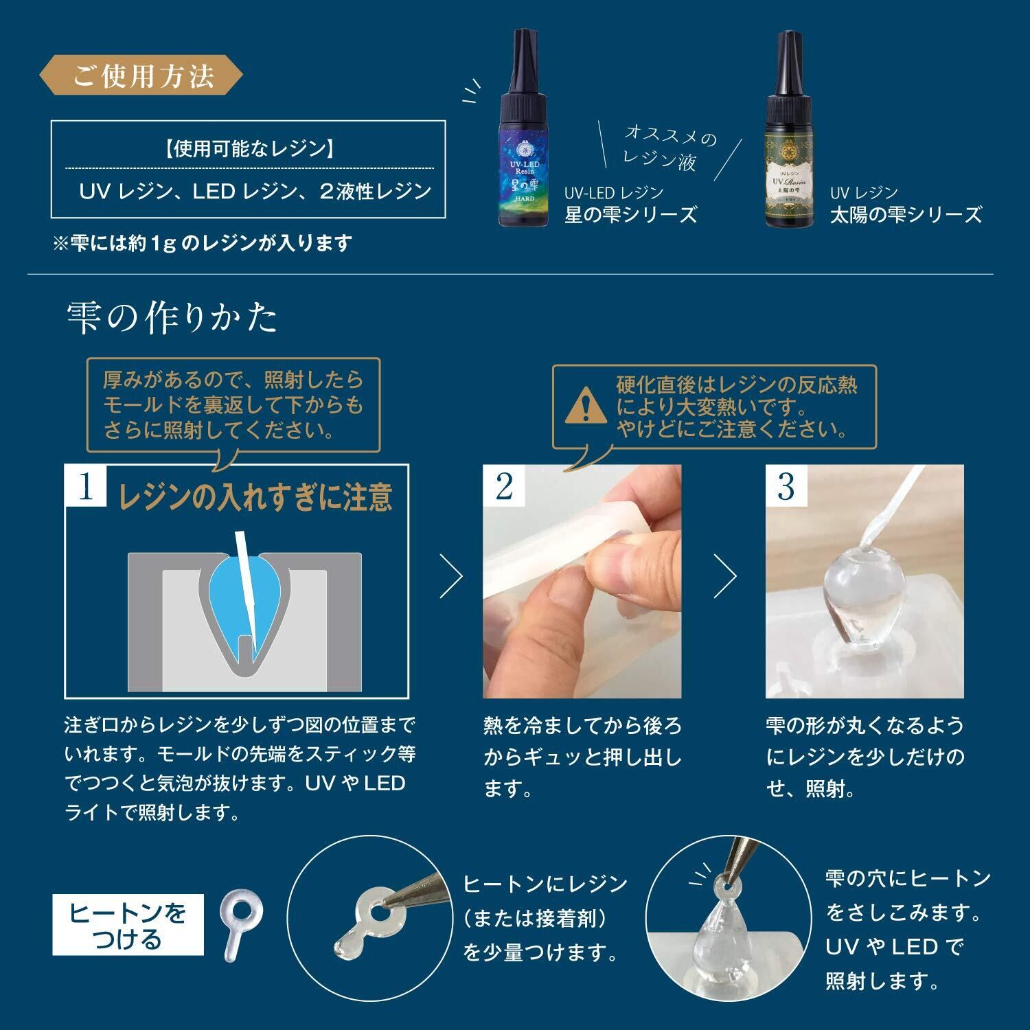 レジンで作れるヒートンモールド付き。・雫には、約1gのレジンが入ります。
