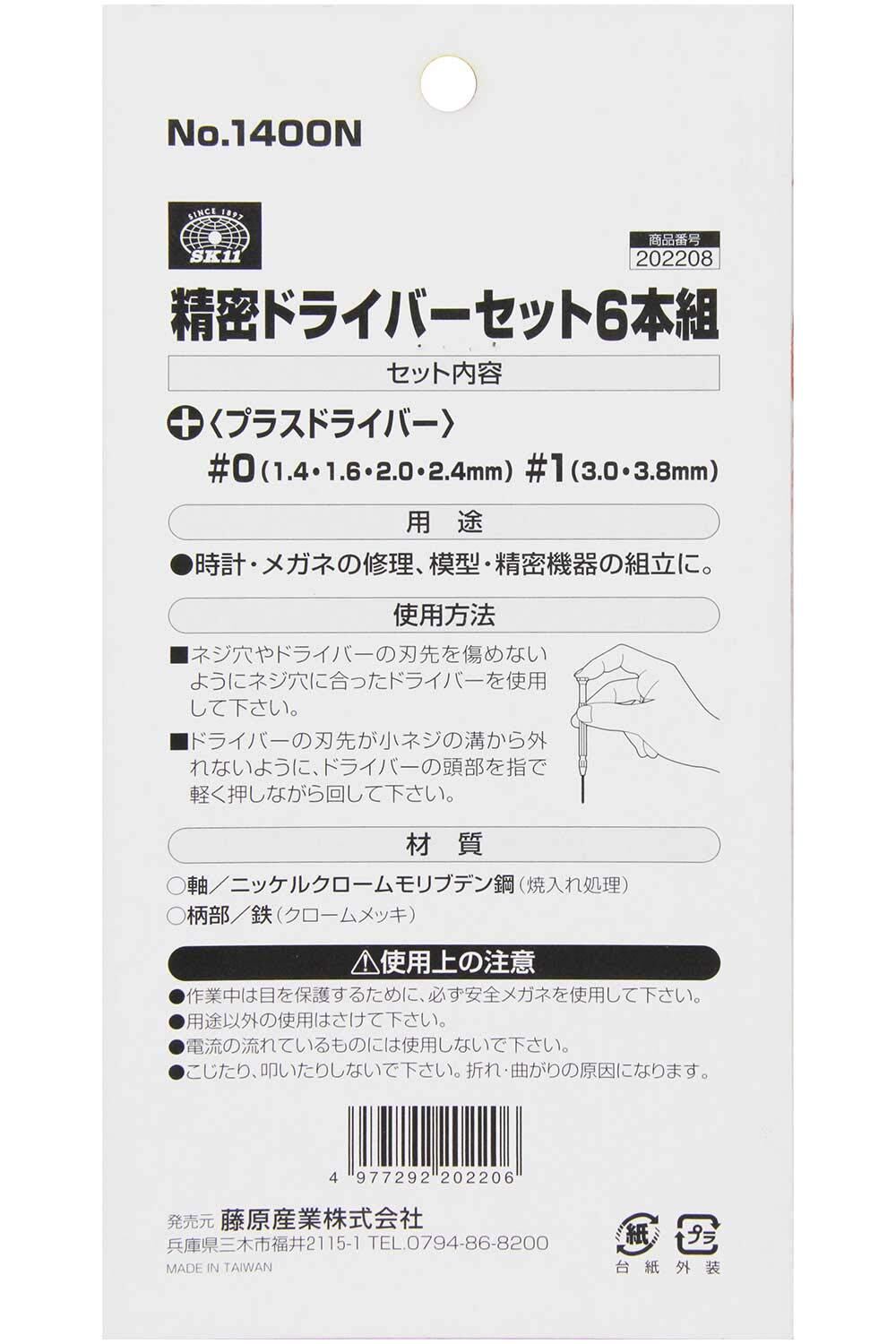 SK11(エスケー11) 精密ドライバーセット 6本組 +No.0(1.4・1.6・2.0・2.4)・No.1(3.0・3.8) No.1400N