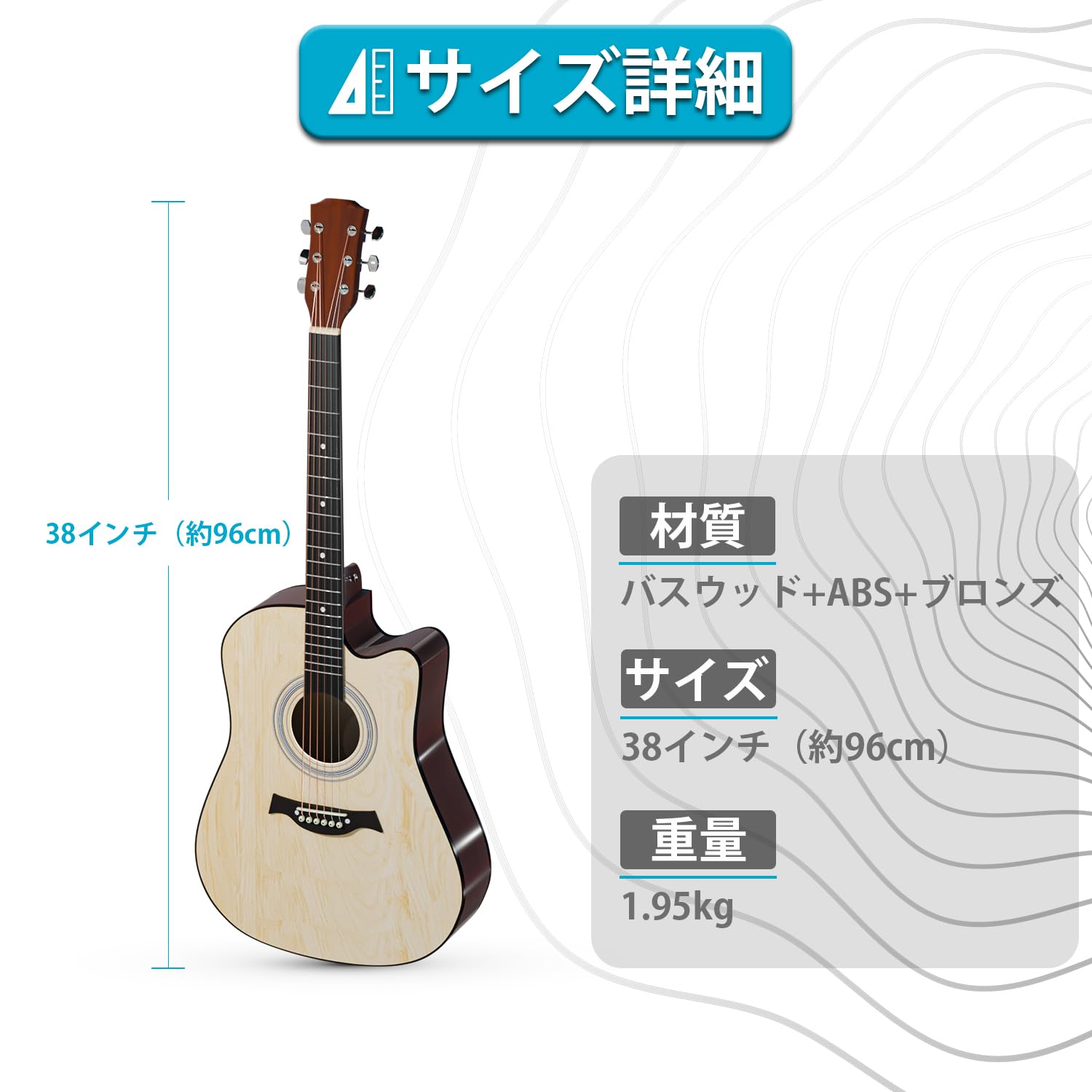 【初心者向け】38インチのアコースティックギターは18フレットと0.11インチの弦高で軽く押さえるだけで楽器本来の響きを一切損なうことなく引き出し、より美しく、豊かな音色を実現。日本語のマニュアルが付きで、初心者でも始めやすいです。