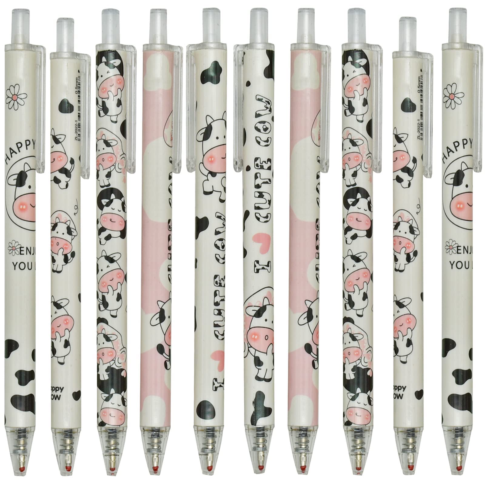 Maydahui かわいい 動物 牛 ノック式 ボールペン 12本セット 0.5mm 黑 インク おしゃれ ウシ ジェル ボールペン 可愛い 文房具 子供 学生 ギフト プレゼント | kor Cat*