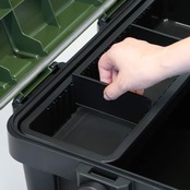 トレーには可動式の仕切板が付いているので、収納する物の形状やサイズによってスペースを調整することができる(仕切板枚数:2枚)。
