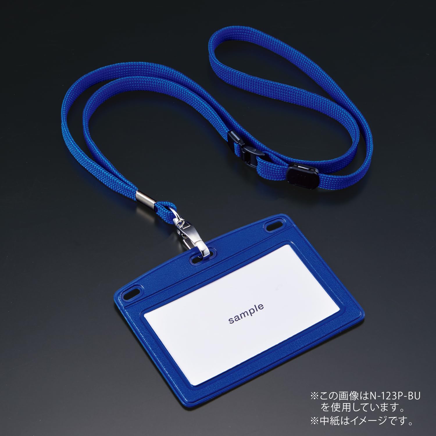 商品名:オープン ネームホルダー 吊り下げ名札 レザー調 名刺サイズ 空 N-123P-BK