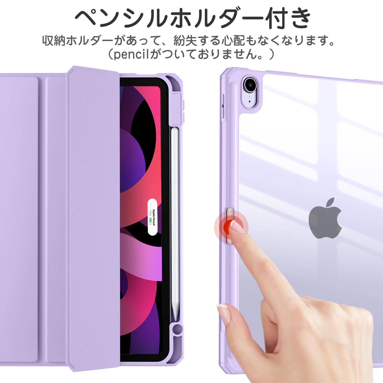 Maledan 対応iPad Air 11インチ ケース(2025 M3)- iPad用 air ケース 2024/M2 Air 第5/4世代 ケース(2022/2020)専用 Pencil収納可能 DIY透明カバー 薄型 衝撃吸収 ラベンダー