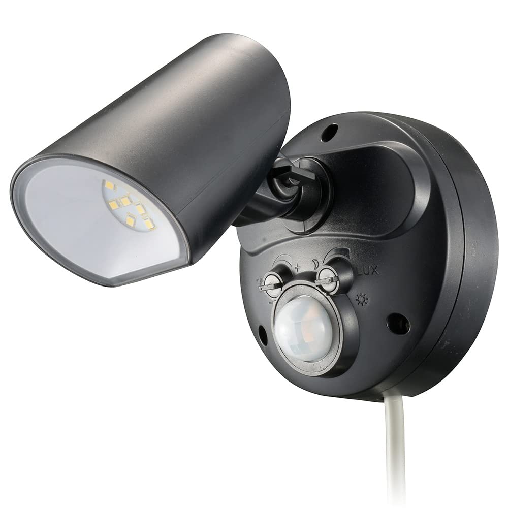 色:ブラック | サイズ:1灯 ●明るさ強力1000ルーメン ●雨に濡れる場所で使用できます ●点灯開始照度・点灯時間の調整ダイヤル付き ●家庭用100V電源タイプ ●赤外線センサーで人を検知しライトが点灯 ●光源は白色LEDを12個使用 ●ライトの首が動き、お好みの位置を照らすことができます ●弊社別売クランプセット(品番:07-8285/型番:OSE-SCS1D)で 柱に取付可能