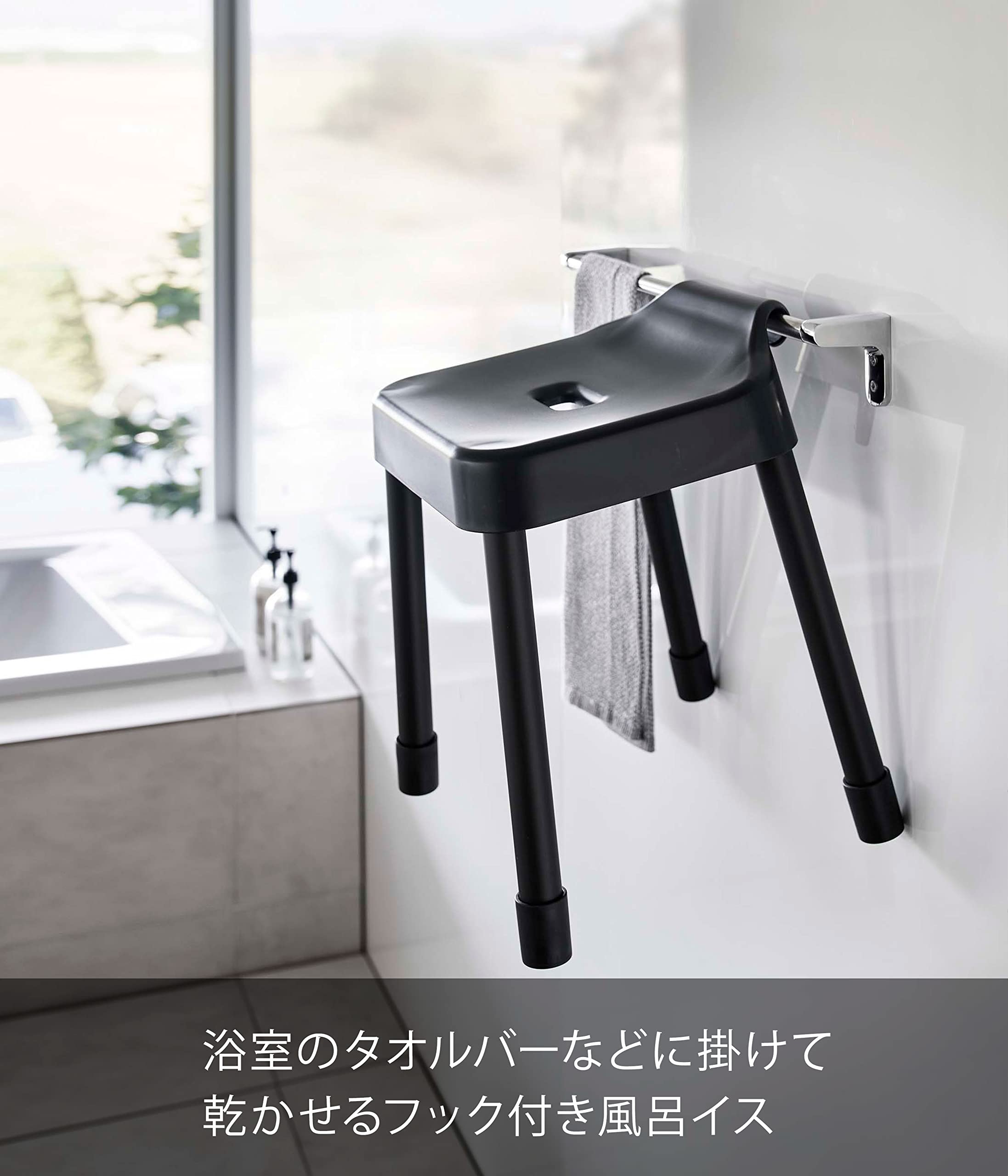 山崎実業(Yamazaki) 引っ掛け 風呂イス SH35 ブラック 約W34×D32×H39cm(座高:約35cm) ミスト MIST 通気性よく乾きやすい 7310