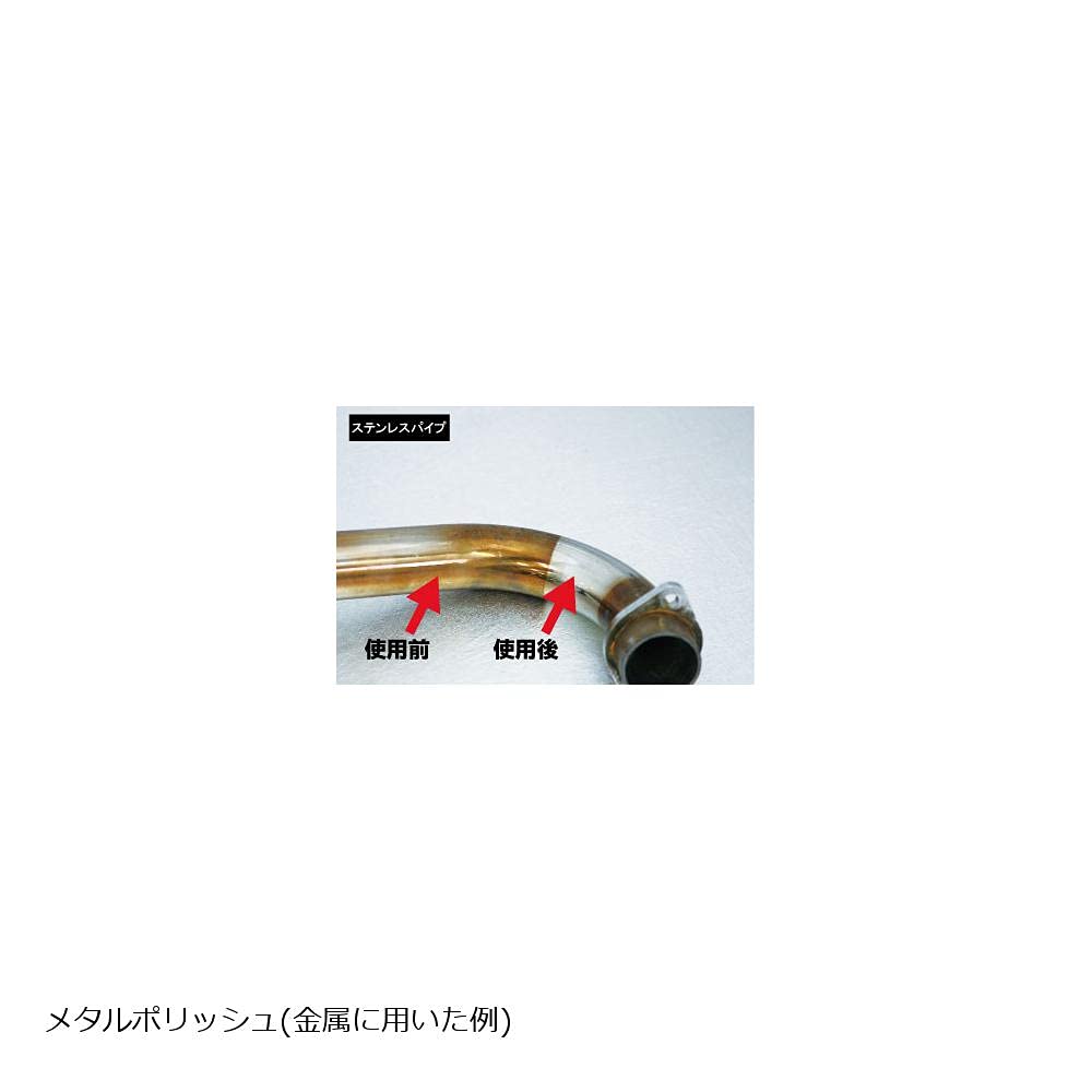 金属・プラスチック・塗装面の汚れ・さび落し、保護コーティング。マフラー等の焼色除去。水垢・軽度の錆落し、アルマイトやメッキ処理された金属、塗装されたプラスチックや金属、UV等でくすんだプラスチックなどに効果を発揮します。