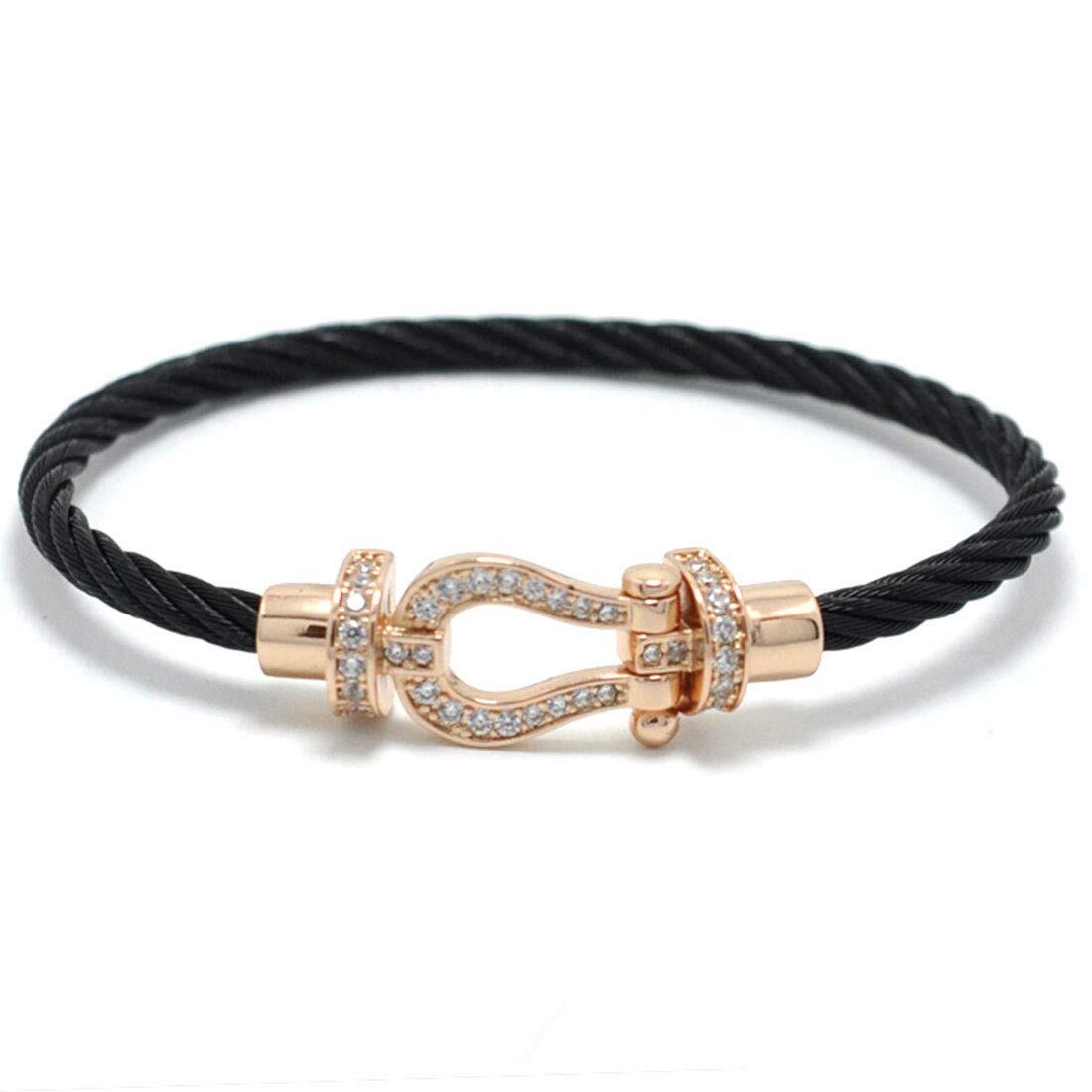【ブレスレットサイズ】周長約180㎜ 素材:ステンレス ジルコニア カッコいい 男女兼用 ホースシュー馬蹄バングル 黒ピンク ブレスレット