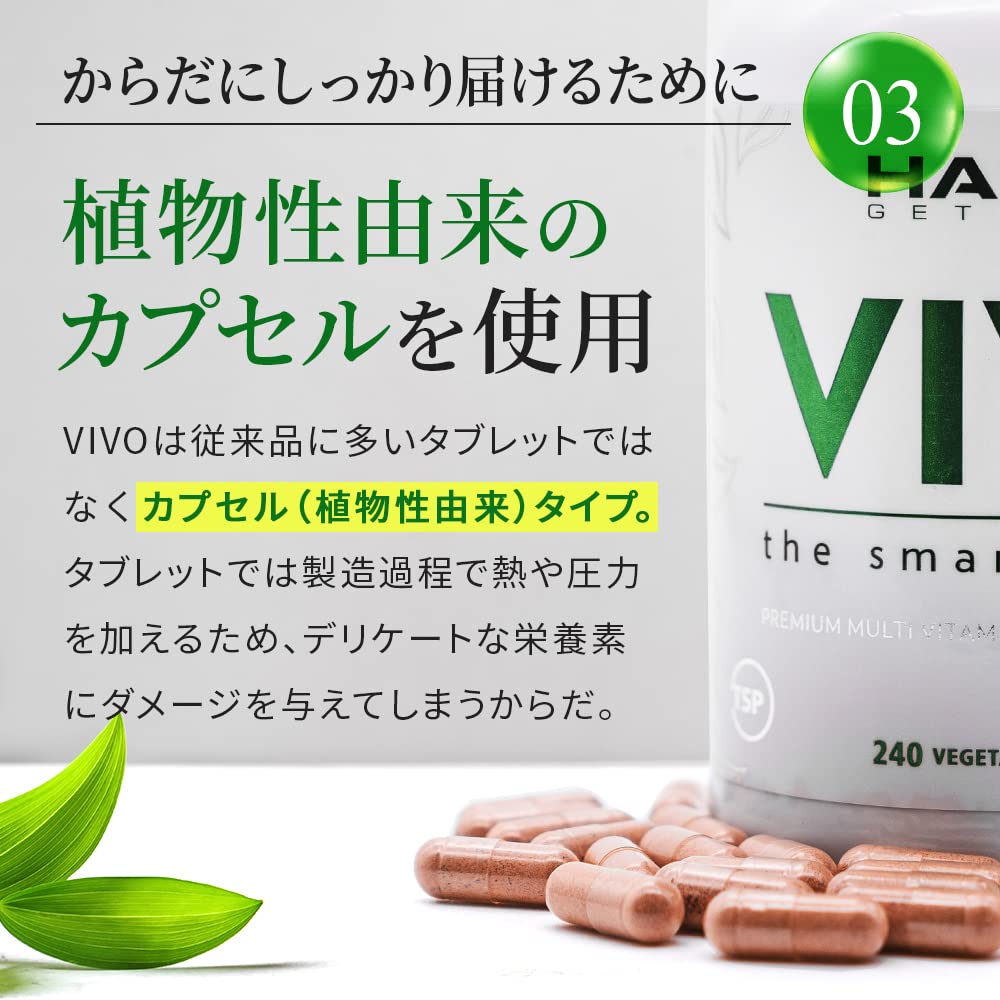 HALEO マルチビタミン&ミネラル VIVO(ビボ) 体に届く自然由来原料 全32種成分 240カプセル(30日分)