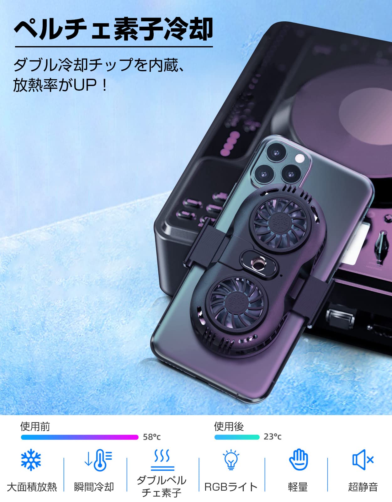 ❶「 過熱防止・急速冷却 」スマートフォンで自撮り写真や生放送、動画撮影、SNS、You Tube、Facebook、TikTokやFPS系のゲームをするので熱暴走対策用の冷却ファンです。 [2022年最新設計:冷却ファンの裏面は最高級の半導体冷却技術(氷陶磁冷感シート)を搭載した、アルミより熱伝導が良いので効率的に熱を吸い取り、ヒートシンクの表面積を広げる事で、自然放熱で吸い取った熱を冷却します。 強烈な熱を持つす携帯電話のCPUなどは、冷却クーラーに氷陶磁冷感シートを付ける事で、さらに急速の冷却効果を実現しています。]