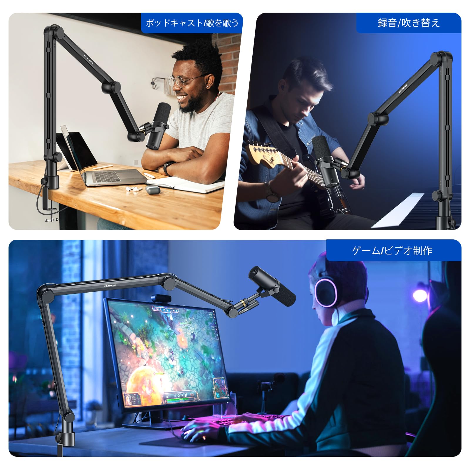 AOKEO AK-49マイク片持ち最大負荷:約71オンス/2 KG、HyperX QuadCast、シュールSM 7 B、Blue Yetiに適しており、市場のほとんどのマイクに適している。すべてのASMRスタジオ、Youtube/Facebookビデオ録画、パソコンデスク、テーブル、ステージ、ホームパフォーマンスなどに適しています。