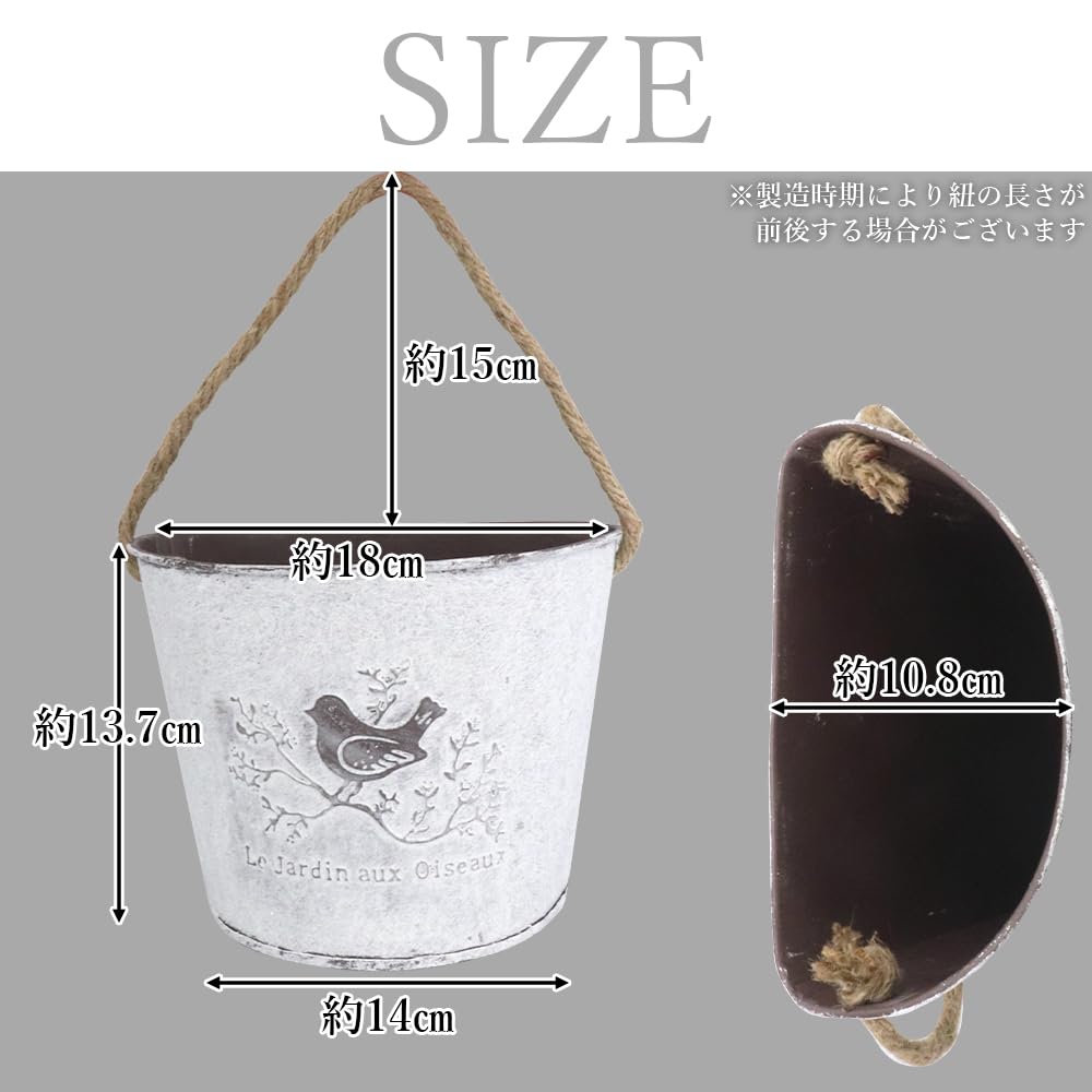 アンティーク調のナチュラルな雰囲気が特徴のハンギングバスケットです。どんな植物の雰囲気にも合わせやすいデザインで、花・つる植物・多肉植物などにおすすめです。