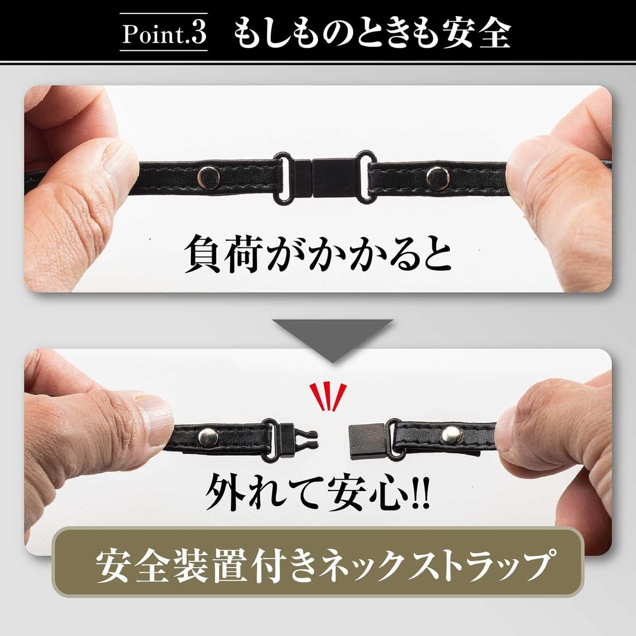 ネックストラップ 【商品仕様】サイズ :ケース7.5cm×10.4cm×0.4cm/透明部分4.8cm×8cm/透明部分:クリア/重量:50g(リール・ストラップ含む)/ケース素材:牛革/ストラップ:合皮/カードポケット:Eufy Security SmartTrack Cardをすっぽり収納。表1裏2 *磁気IDカードと電子マネーカードを一緒に入れると誤作動が生じる可能性があります。