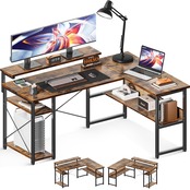 【ラック付きデスク・収納力満載】l字デスクの足元には一体型のラックが備え、本や書類などを使いたい時にサッと取り出せます。たっぷりの収納でデスク周りをスッキリ快適に!また、L字型のデザインで部屋のコーナーを最大限に活用でき、ご家庭でもオフィスでも、日常の仕事に十分なスペースを確保できます。