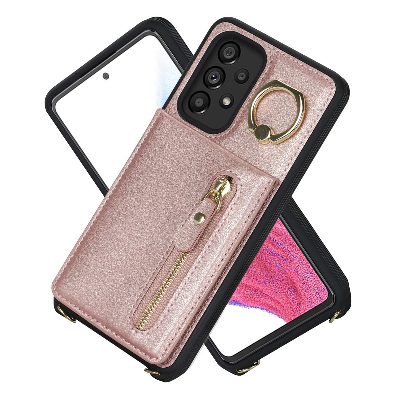 A53 5g galaxy ケース ショルダー 手帳型 上下開 リング付きケース galaxyA53 リング付き リング Galaxy A53 5G ケース SC-53C ケース A535G docomo / SCG15 ケース au 対応 A53ケース サムスン ギャラクシー A53 カバー SC53C ケース SCG15 カバー スマホケース A53ケース 適用 case 【iCoverCase】 リング カードケース カード収納 スナップ式 横置き スタント 肩がけ 首掛け 斜め掛け ファスナー ストラップ付き ショルダーケース カード入れ カバー スマホケース 携帯カバー ピンク