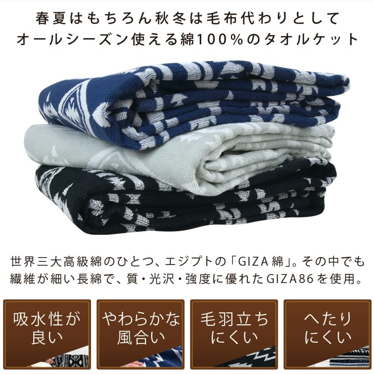 ふっくら軽くやさしい風合い、高級綿の代表格であるエジプト綿100%のタオルケット。通常のコットンに比べて丈夫なため、お洗濯を繰り返しても毛羽立ちにくく風合いが損なわれません。使っていてもボリュームが減りにくく、へたりにくい。天然素材でお肌のデリケートな方も安心、冬場は毛布代わりにとオールシーズン使える良質なタオルケットです。ソファーカバーやキャンプ用にご使用される方も多いです。