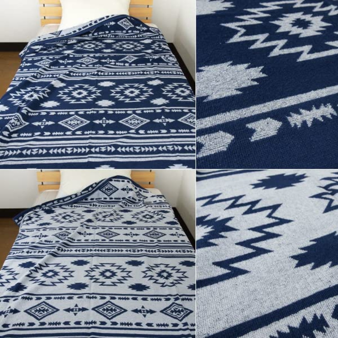リヴェール タオルケット セミダブル エジプト綿100% オルテガ柄 ジャガード織 ソファーカバー 夏用 (ネイビー)