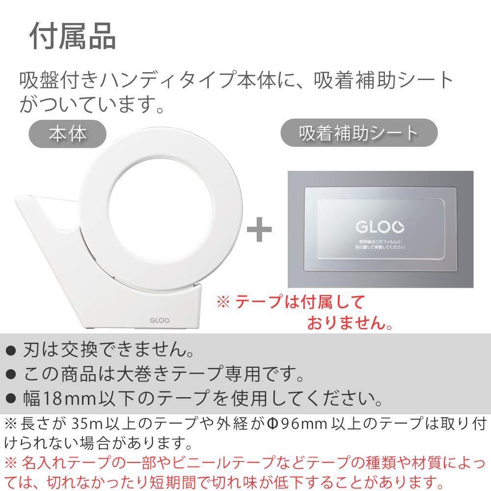 コクヨ テープカッター GLOO 吸盤 ハンディタイプ 大巻き 専用 白 本体サイズ:H133xW38xD149mm/164g T-GM500W