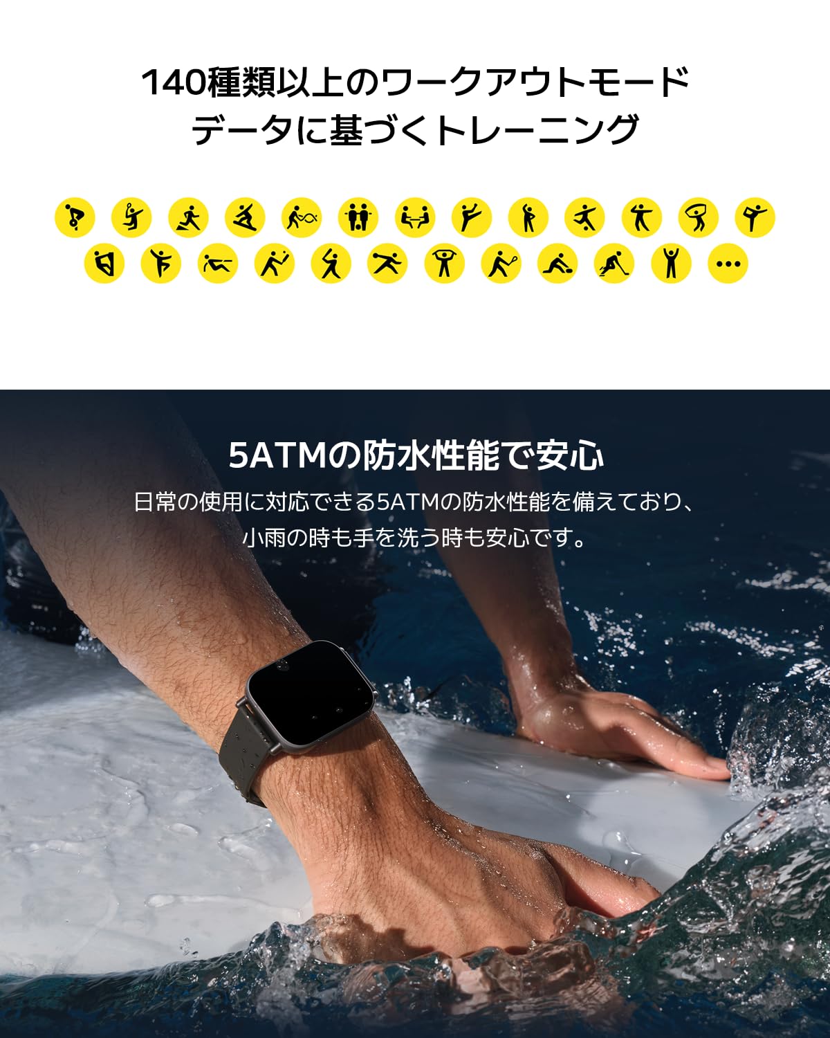 【ATMの防水性能で安心】日常の使用に対応できる5ATMの防水性能を備えており、小雨の時も手を洗う時も安心です。
