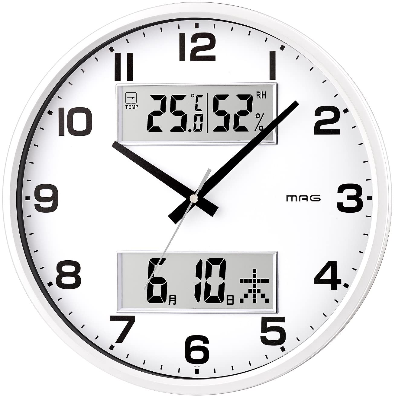 MAG(マグ) 掛け時計 アナログ ダブルポスト 静音 連続秒針 温度 湿度 日付 曜日表示 ホワイト W-766WH-Z 直径32cm
