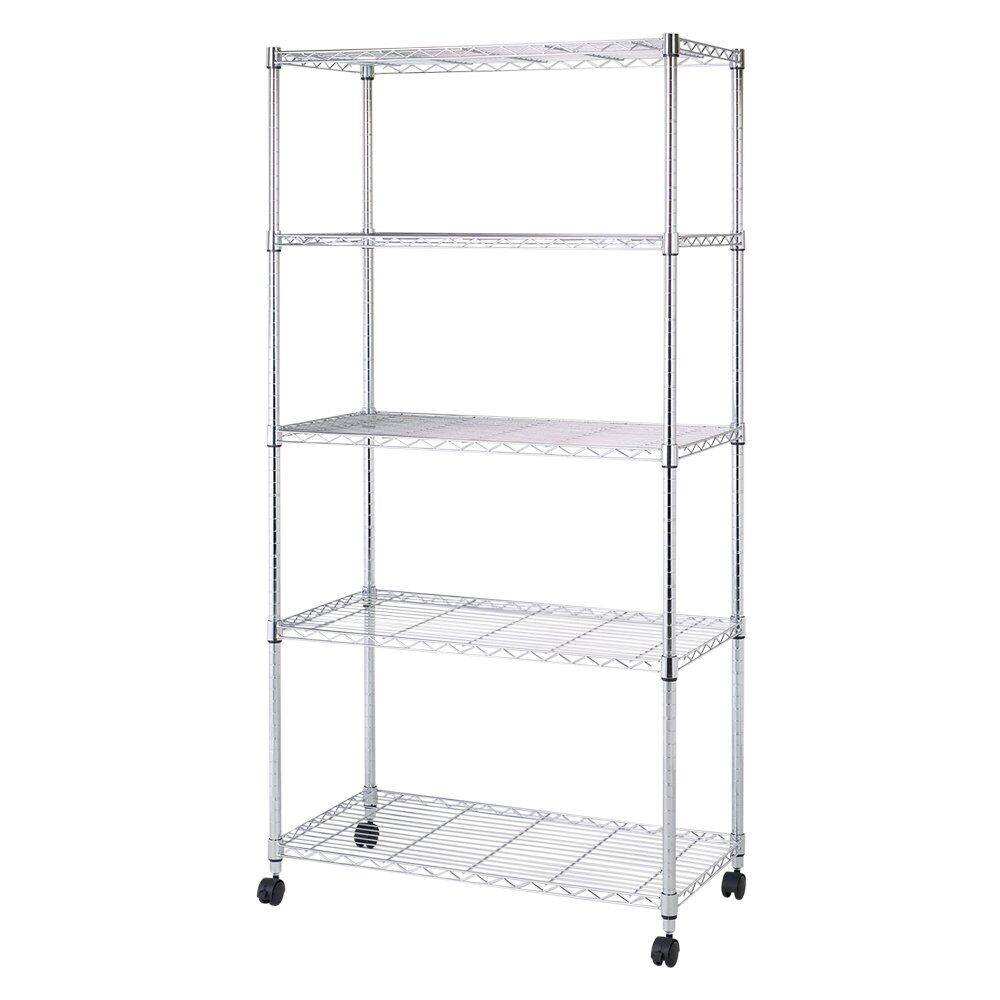 ドウシシャ 棚 ルミナス互換 メタルルミナスラック 幅90 5段 スチールラック 収納棚 幅90×奥行46×高さ180cm 全体耐荷重400kg 頑丈 キャスター付き 防錆加工 ポール径25mmパーツ対応 業務用 シェルフ キッチン収納 EL25-90185 | kor Cat*