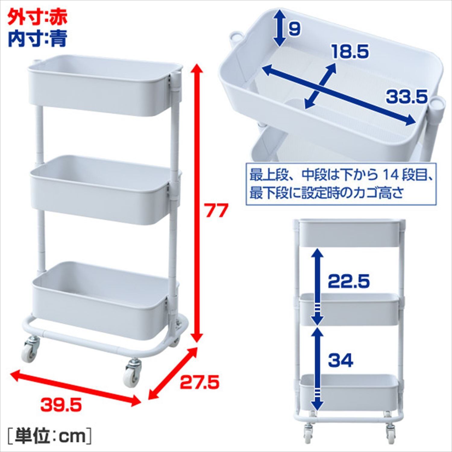 バスケット内寸:幅33.5×奥行18.5×深さ9cm
