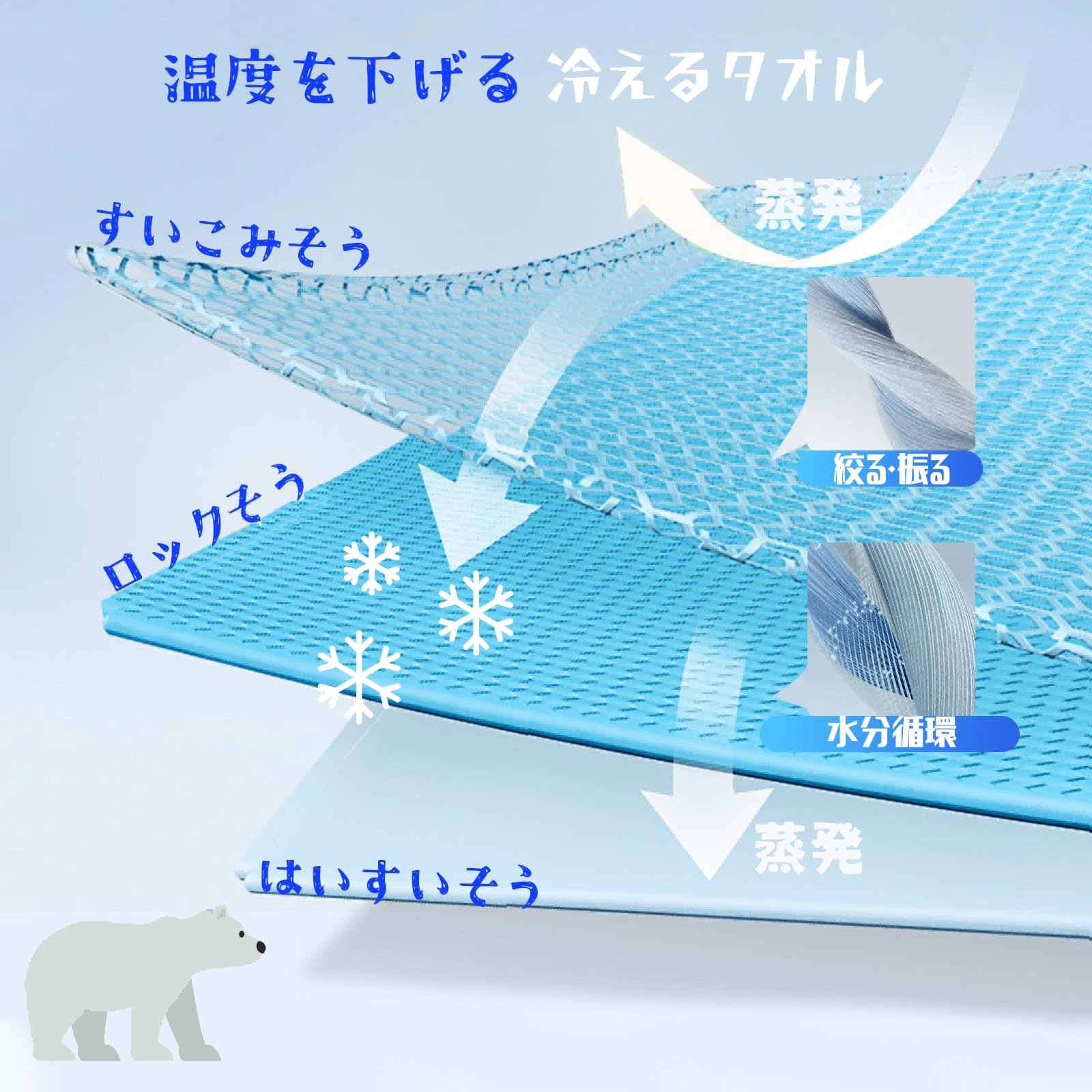 使用は簡単!水に濡らして絞り、振るだけで冷却効果を発揮。夏の日差しや紫外線の対策にも。
