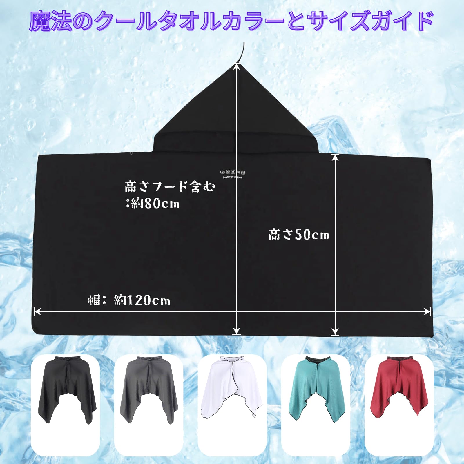 冷却 フード付き冷たいスポーツタオル 冷感 ポンチョ 熱中症対策 速乾 軽量 吸水 ブラック