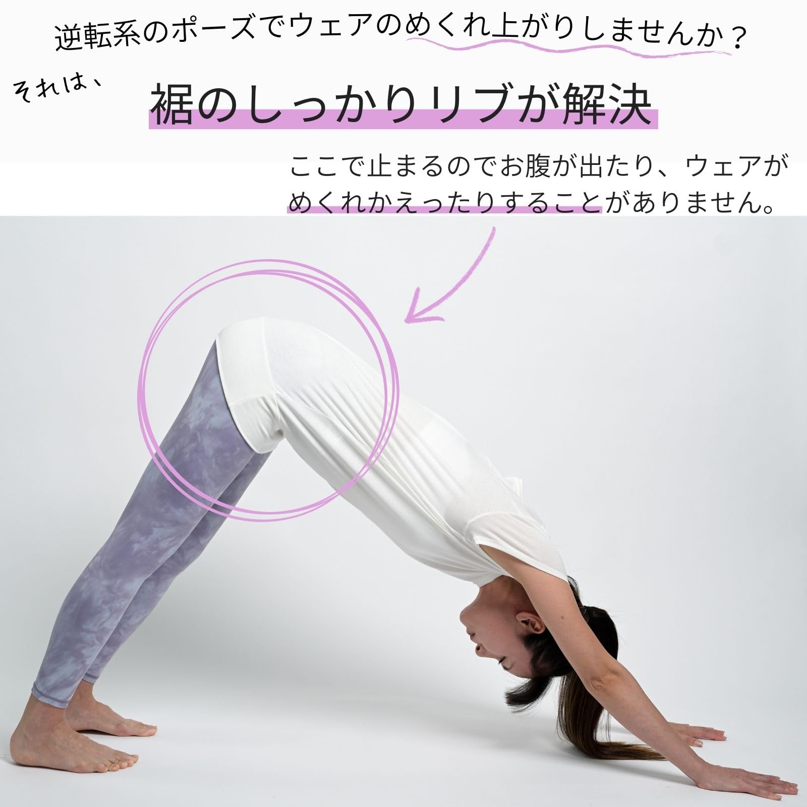 【機能性も抜群】裾の幅広リブが逆転系のポーズでもめくれ返らない。体型カバーも綺麗にできるヨガウェア。