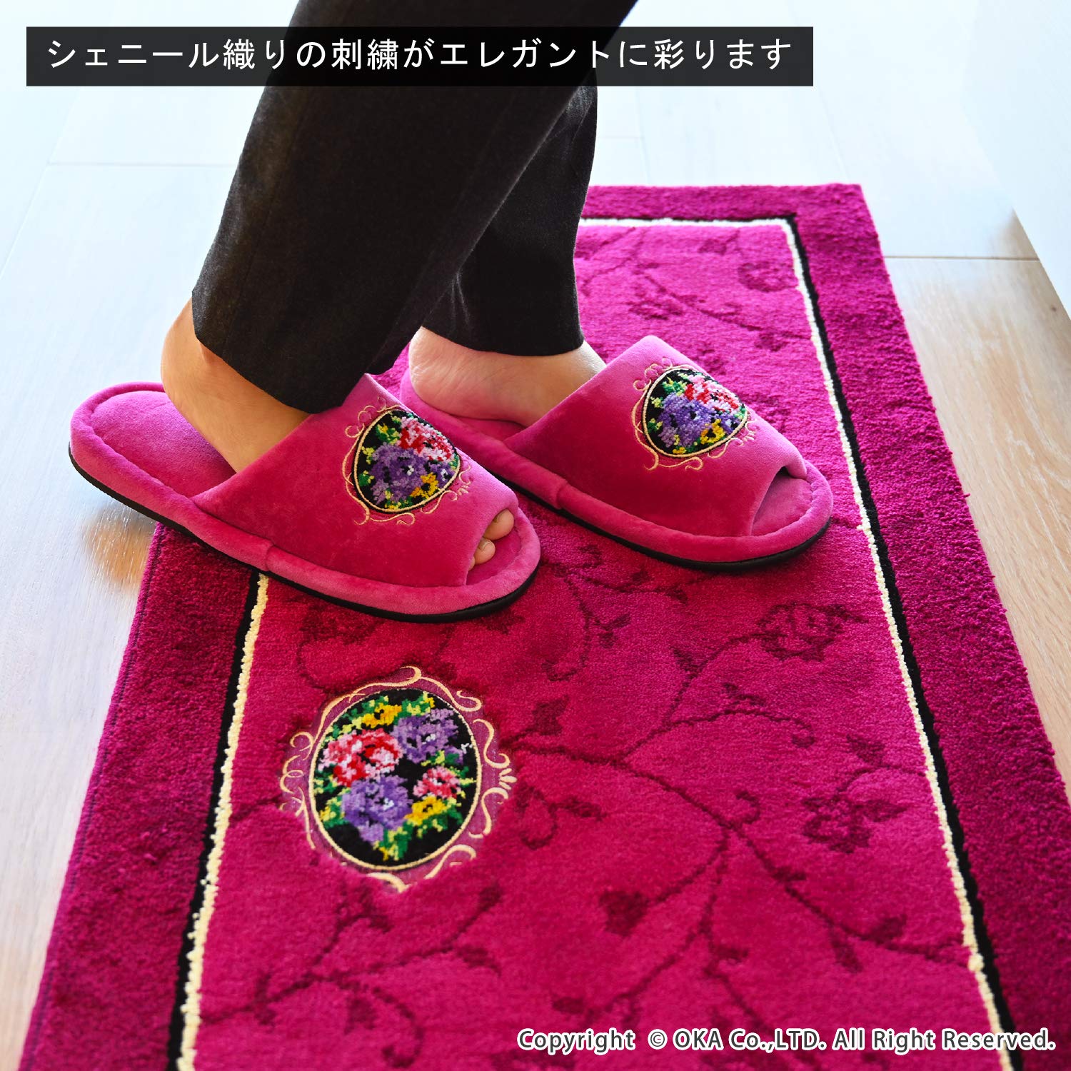 オカ(OKA) シェニールロゼ キッチンマット 約45cm×180cm ピンク (日本製 吸着 高級ウィルトン)