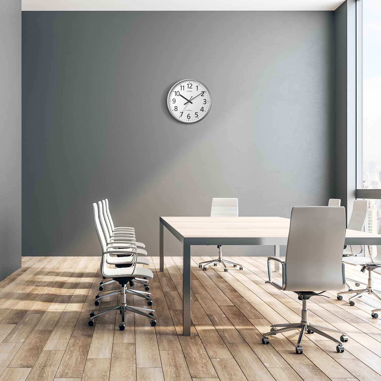 リズム(RHYTHM) 掛け時計 電波時計 オフィス 屋内用 静音 連続秒針 シルバー Φ36×4.5cm オフィス用品 事務所 シチズン CITIZEN 8MYA39-019