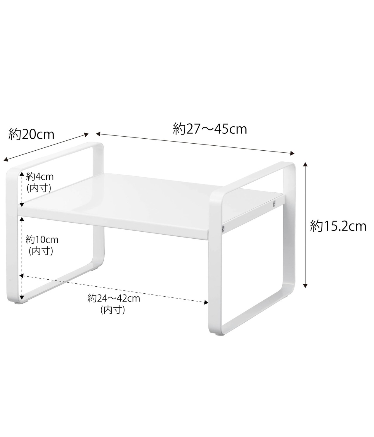 山崎実業(Yamazaki) 伸縮 収納ラック 2段 ホワイト 約W27~45XD20XH15.2cm タワー 省スペース 収納棚 5399