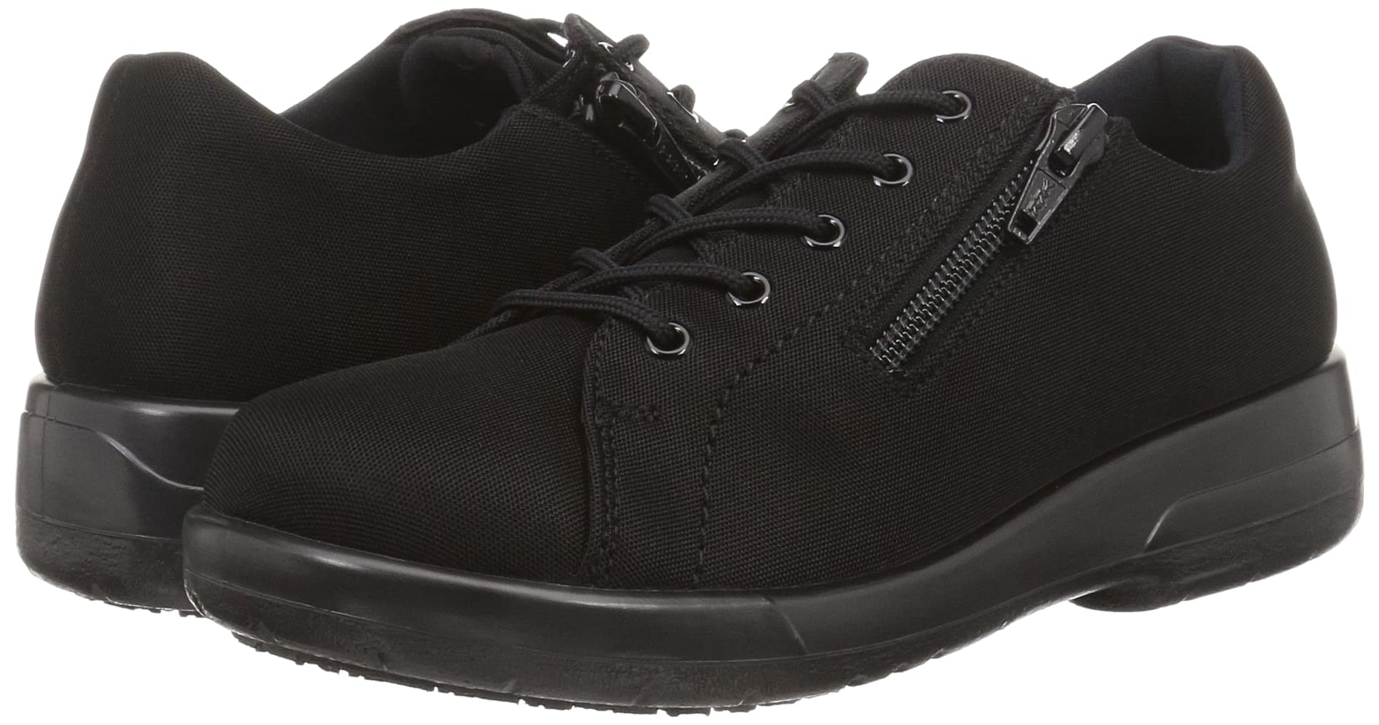 内側にファスナー付きで、脱ぎ履きスムーズ。