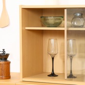 不二貿易 食器棚 キッチン収納 幅60×奥行29×高さ44cm ナチュラル ガラス扉 可動棚 組立品 81909