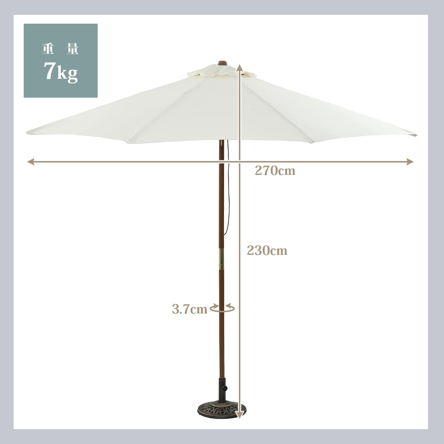 [山善] ガーデンパラソル 木製パラソル (直径270cm) お庭 ベランダ テラス バルコニー 日よけ ガーデンマスター NMP-27(IV) アイボリー