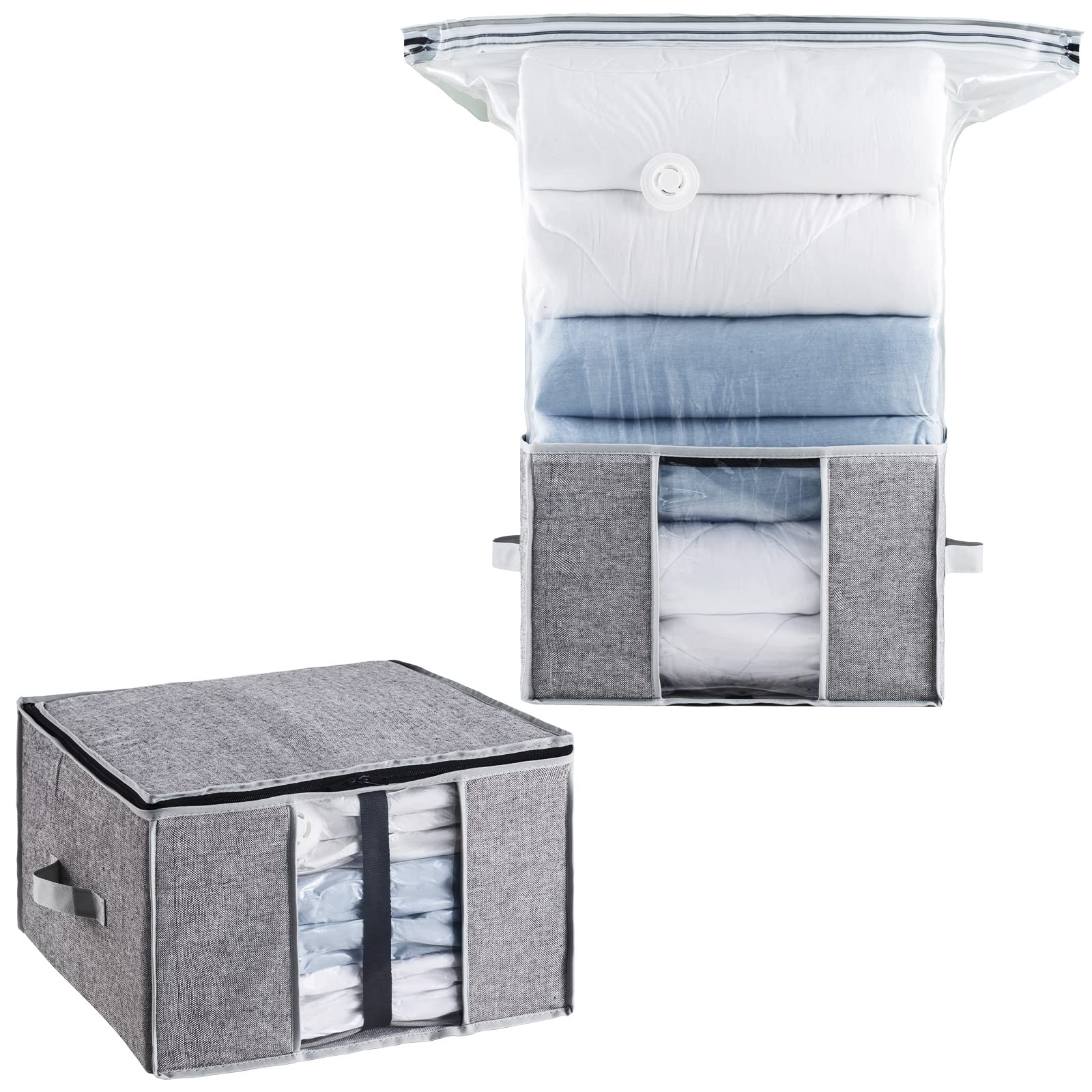 抜群な収納ボックス:収納ボックスの内部に丈夫なプレートが支えて、型が崩れにくくて、何個のボックスを積み重ねることができます。収納ボックスと圧縮袋がぴったりとフィットし、安定して変形しません。柔軟な素材で、丈夫で耐久性があります。革新的なエアバルブで、操作がより便利になります。圧縮バッグは一方向弁を採用しており、気密性があり、あらゆる掃除機に対応しています