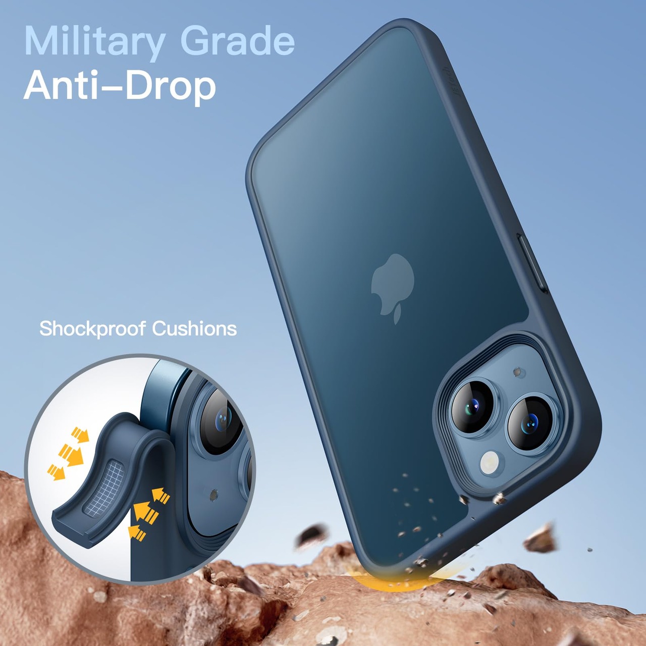 JEDirect マットケース iPhone 13 Mini 5.4インチ 耐衝撃性ミリタリーグレードの落下防止 つや消しの半透明の背面電話カバー 指紋防止 (ストームブルー)