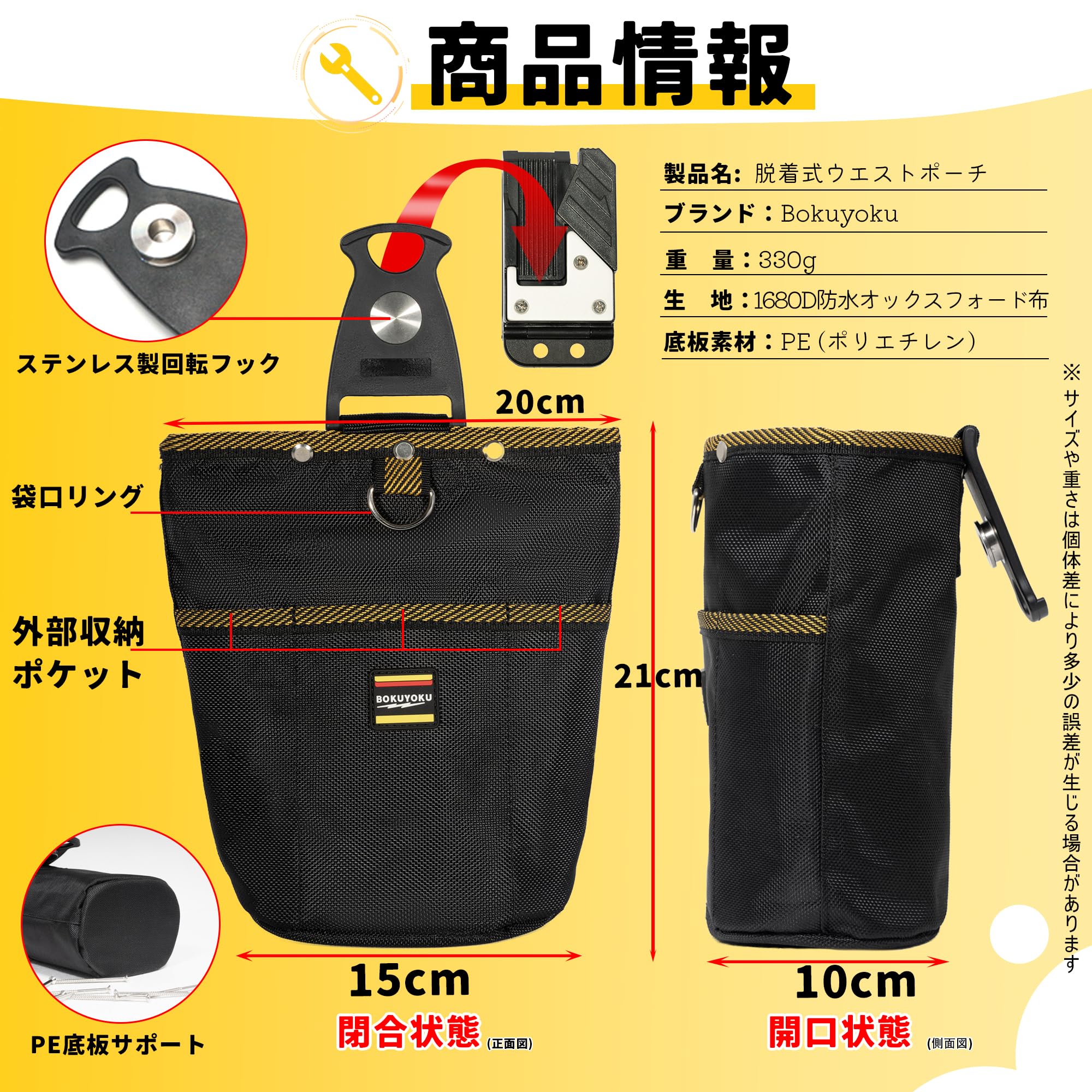 腰袋 釘袋 2段 バネ式開閉 着脱式工具ホルダー付き 着脱楽々 ベルトに装着可能 ウエスト工具ポーチ ビスケース 小物入れ 高密度ナイロン素材 防水 耐久 電工・大工・DIY・釣り愛好者に最適
