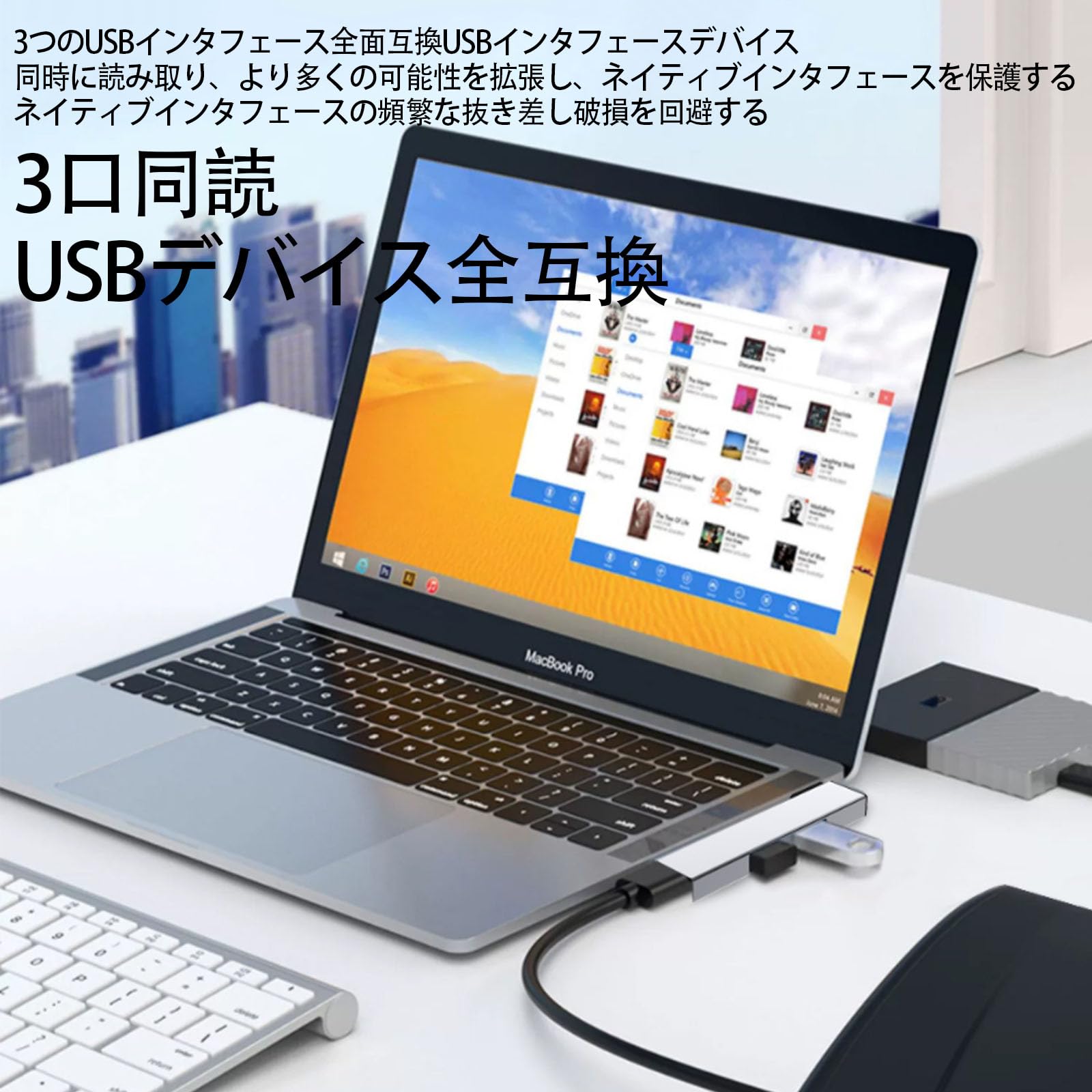 【3ポートUSBハブ】ノートパソコンのUSBポートを1つのUSB 3.0ポートと2つのUSB 2.0ポートに拡張します。 3つのポートが同時に動作します。ノートブックPCのポートが少ない問題を解決し、HDD間でデータを共有する問題を解決し、重複した抜き差しに別れを告げる。